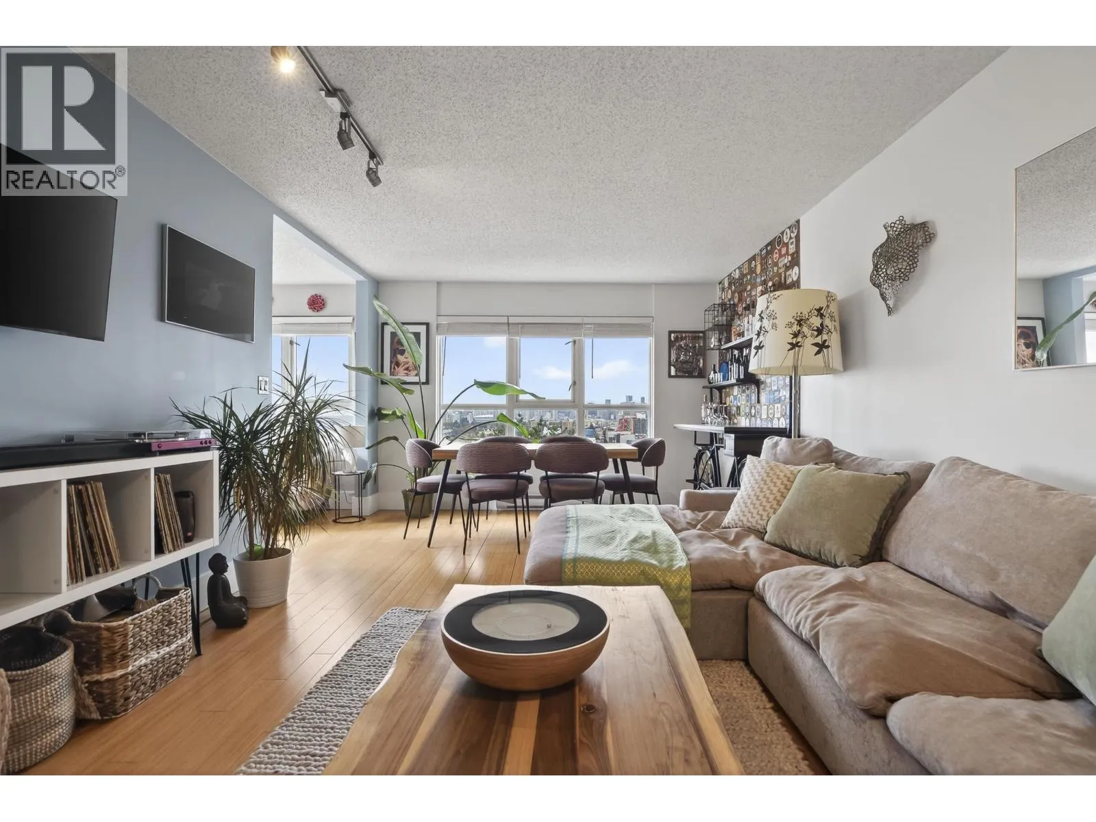 UNOBSTRUCTED PANORAMIC VIEWS FROM EVERY ROOM! Stunning 2-bed, 2-bath + flex corner suite with breathtaking, unobstructed panoramic city, water & mountain views. Flooded with natural light, this beautifully updated home features a contemporary kitchen with new quartz countertops & SS appliances, in-suite laundry & a smart, functional layout. Proper, large primary bedroom with plenty of room for king-size bed plus