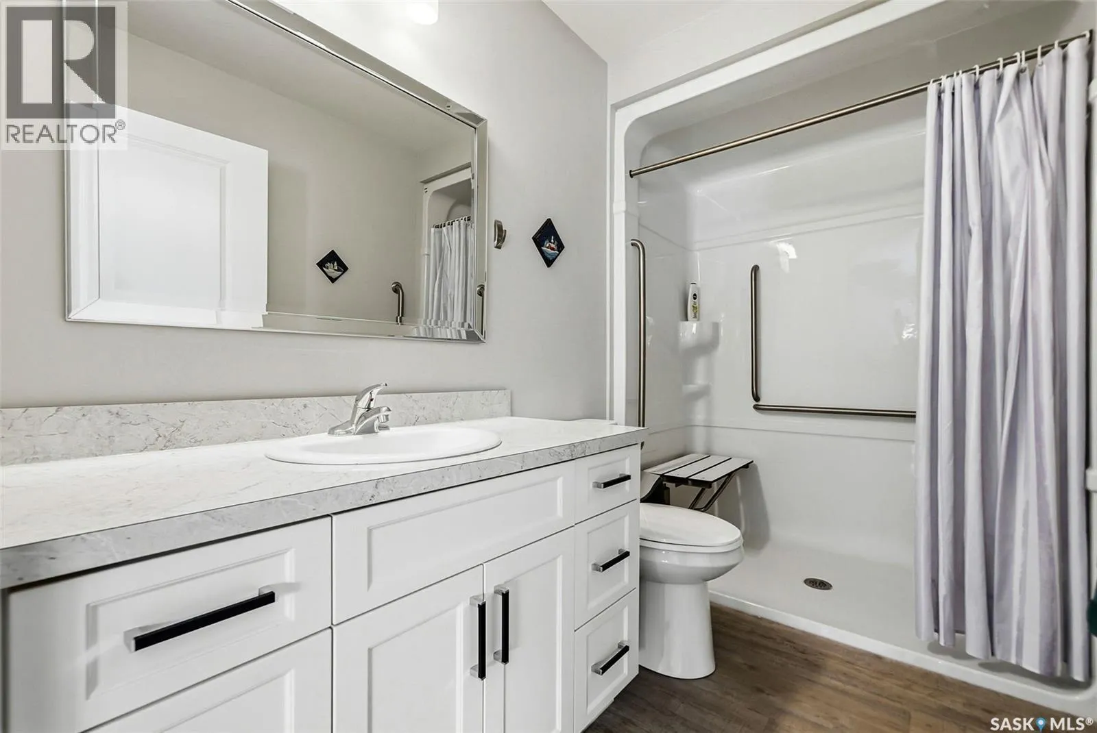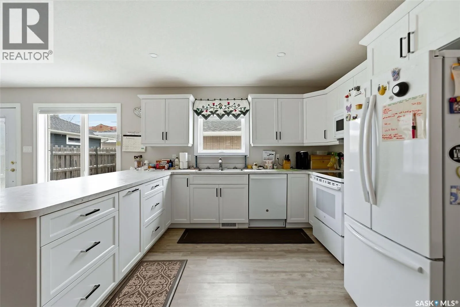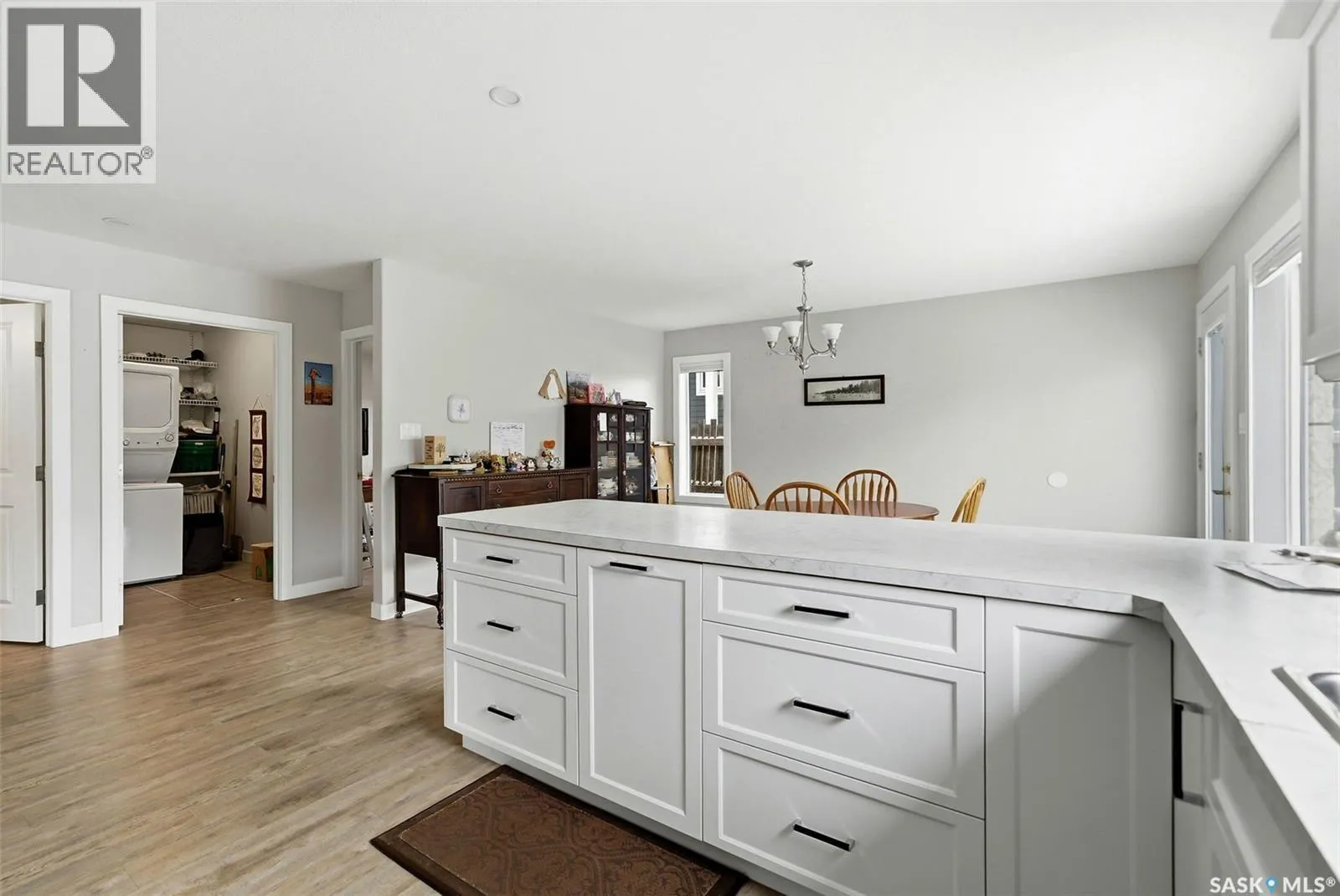 Truly one of a kind, this custom-built, all-brick, bungalow-style duplex offers 2,460 sq. ft. total of single-level, open-concept living and is fully wheelchair accessible to code. The bright living room features large windows with window treatments throughout. A functional open-concept kitchen with modern white cabinetry and ample storage flows seamlessly into the dining area, with garden doors leading to a