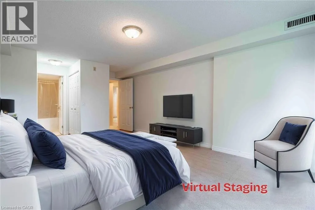 Spacious and bright, this 2-bedroom, 2-bath condo in the heart of Ancaster’s Meadowlands offers over 1,150 sq ft of comfortable living with a smart layout and plenty of natural light. The living room features a cozy gas fireplace and opens to a private balcony with a quiet treed view — a rare, calming backdrop in the community. The primary bedroom