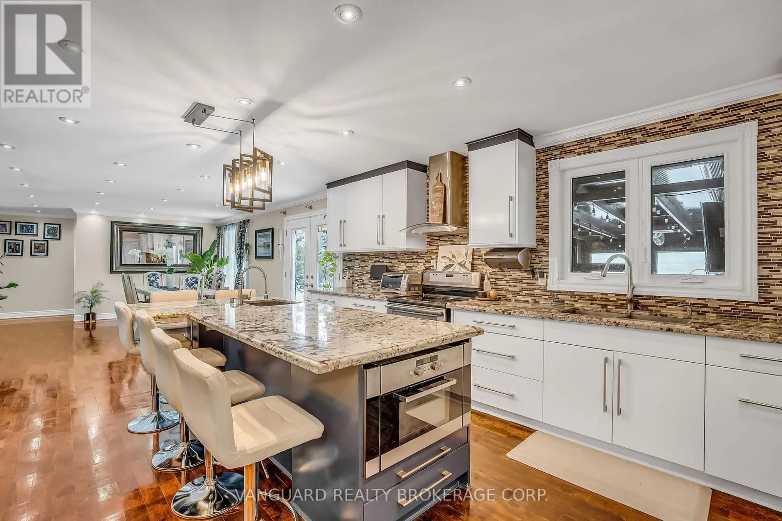 A rare and highly coveted live/work residence offering exceptional scale and flexibility. This stunning, sprawling 3,500 sq. ft. bungalow features 5 spacious bedrooms and 4 well-appointed bathrooms, designed for elevated living and effortless functionality. The property boasts two separate legal driveways with direct access to the rear yard and a heated, approximately 1,000 sq. ft. workshop, ideal for discerning owners
