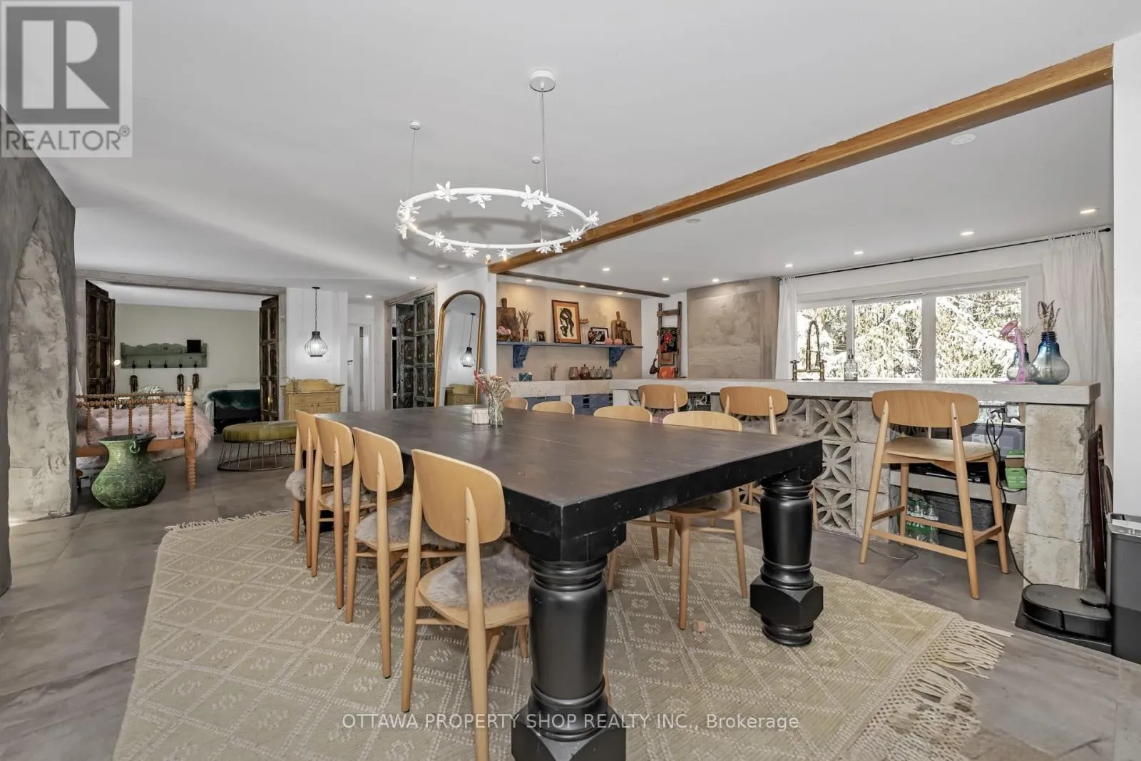 An extraordinarily rare residence in the heart of prestigious Beaverbrook, Kanata, this one-of-a-kind bungalow offers a level of craftsmanship and global elegance seldom seen in Ottawa. Originally a three-bedroom bungalow, it has been artfully re-imagined into a spacious two-bedroom (can be easily converted back to 3 bedroom) layout, plus den/office, which emphasizes flow, scale, and refined living. The showpiece of