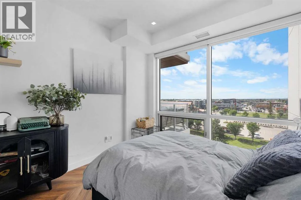 Discover sophisticated living in this upscale 2-bedroom, 2 bathroom condo nestled in the heart of West Springs. Perfect for professionals or downsizers, this concrete-built, low-maintenance residence offers quiet comfort, durability, and a prime location in a vibrant, walkable community. Step through the generous foyer into a sun-drenched open-concept layout featuring expansive windows and sliding glass doors that flood the space