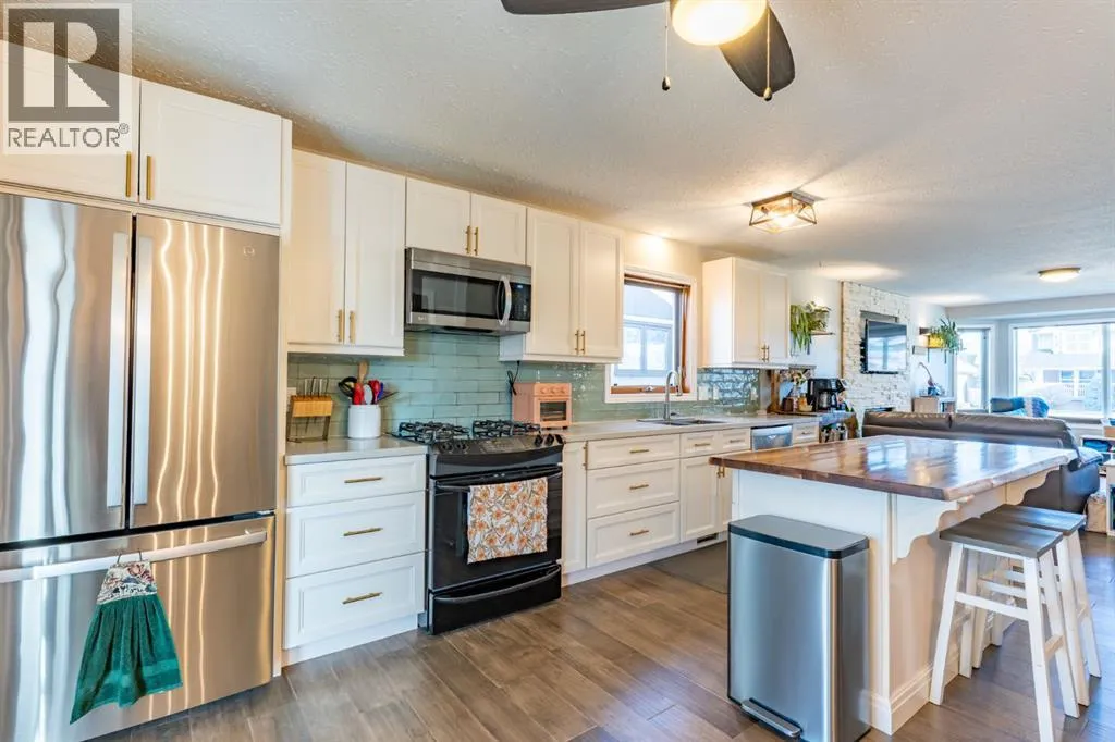 Welcome to this beautifully updated 3+2 bedroom, 4-level split in the heart of Ross Glen, offering space, style, and a layout that truly works for family living. Step inside and head up to the bright, open main level where natural light pours into the inviting living room, highlighted by a gas fireplace with a striking white stone feature. The space