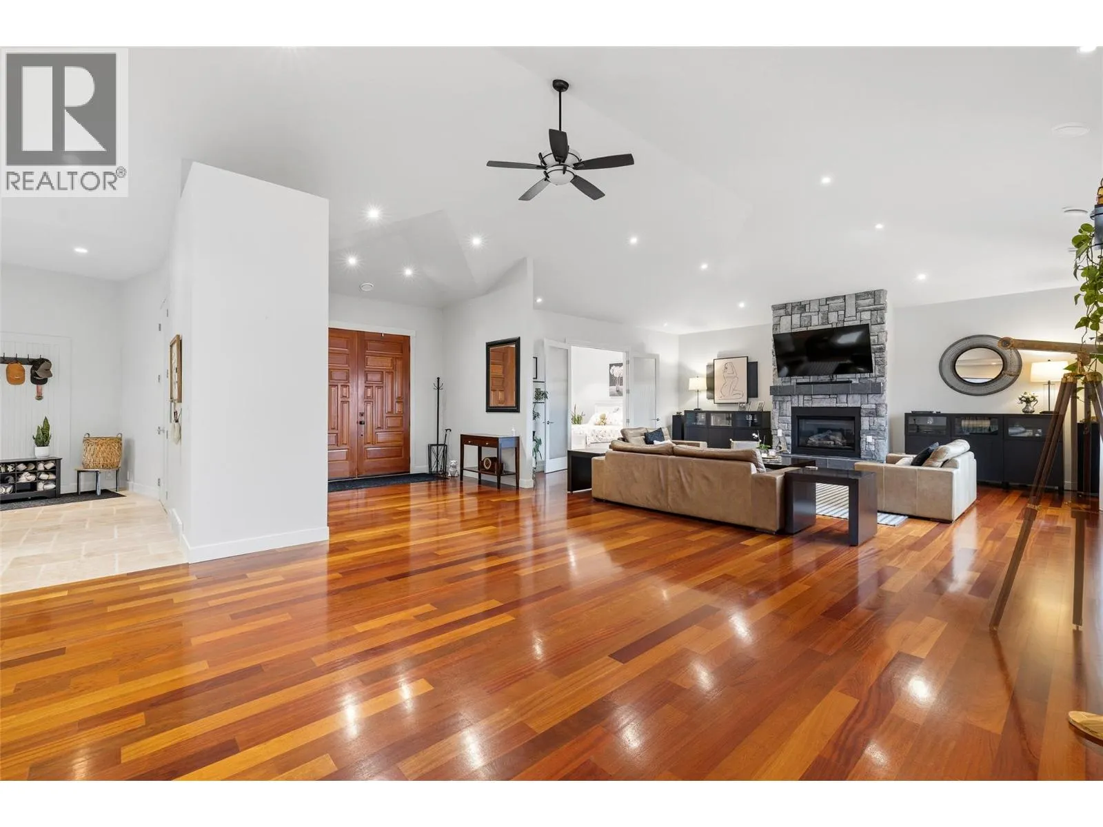 Experience over 6,000 sq ft of executive luxury in this exceptional home, perfectly situated on a quiet cul-de-sac backing onto Knox Mountain—ideal for hiking and outdoor adventures. Designed for comfort and grandeur, this spacious residence features two primary bedrooms with en-suites and four additional bedrooms, offering ample space for family and guests. Gorgeous 3/4-inch Brazilian cherry hardwood flooring, installed and