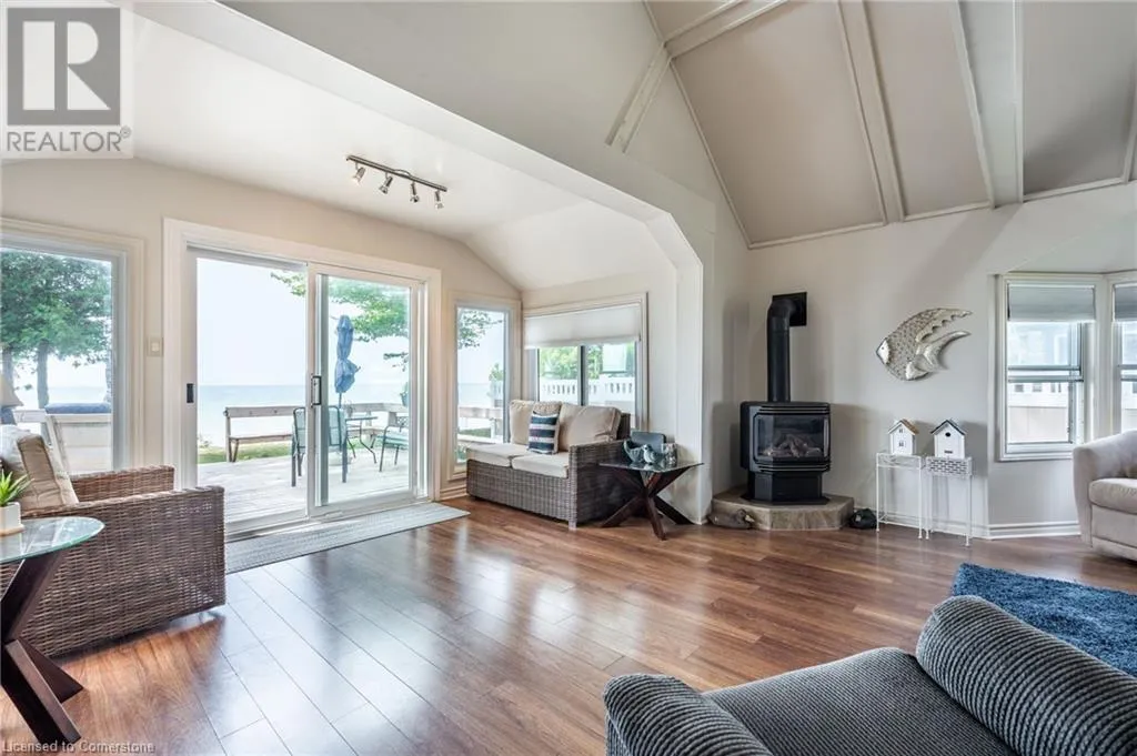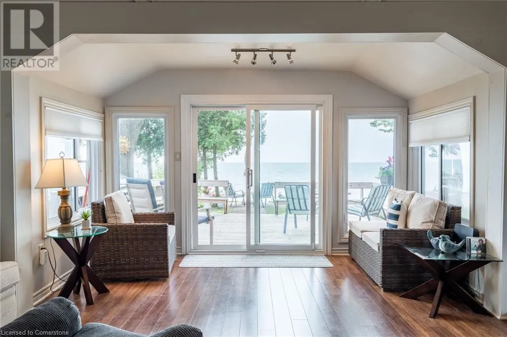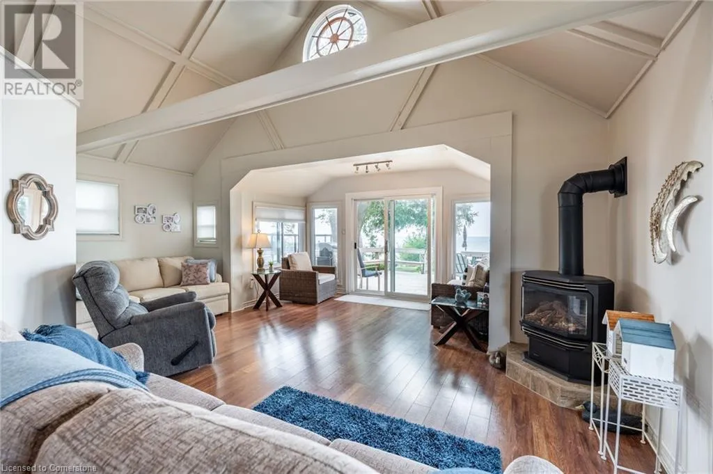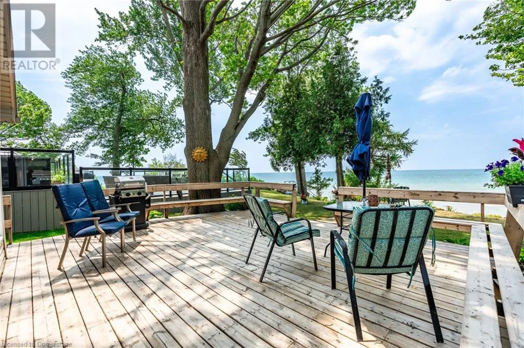 +"PublicRemarks": "Clean, move in ready 4 season home directly on LAKE Erie in the friendly Peacock Point Community ! Just unpack your clothes and food and start enjoying life on the LAKE! This charming home offers year-round comfort and features a well-appointed kitchen with ample cabinetry, generous counter space, and stainless steel appliances. Open concept living area with WATER and sky views of the LAKE. Keep warm with the natural gas fireplace, perfect for relaxing evenings! Modern 3-piece bathroom adds convenience. You'll love the spacious loft- ideal for extra guests, sleeping bedroom area or a retreat, or home office. Situated directly on Lake Erie, this waterfront property boasts stunning lake views where you can feel the refreshing lake breeze from your front or rear deck plus lower patio & the second outdoor seating area. Additional highlights include a cistern for fresh water PLUS water is provided from Spring to Fall by the Peacock Point Community water system, (yearly cost = $315.00) Recent, professionally built concrete Break Wall with steel stairs to the sand and gravel Lake Erie Beach! Steel roof (2019). Fence 2024. Parking for up to three vehicles. Holding tank for waste water. Hot water tank owned. Natural gas (not propane). This turn-key getaway is a rare opportunity—don’t miss your chance to own a beautiful slice of lakeside paradise! Flexible closing! Enjoy your new home on Lake Erie NOW! Recent survey available. (id:62650)"