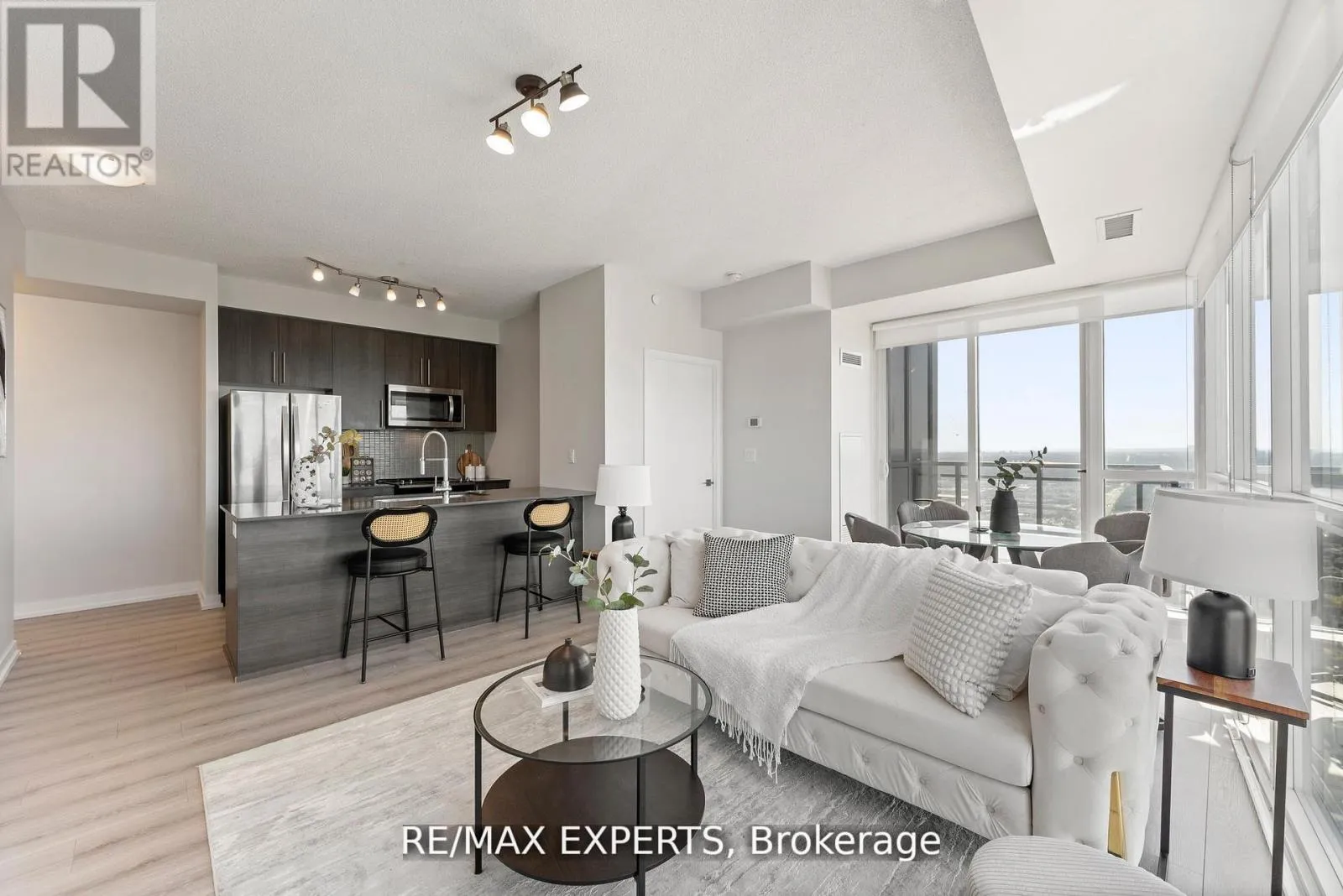 Experience breathtaking sunsets and panoramic views in this stunning 2-bedroom, 2-bathroom northwest-facing condo in the heart of downtown Mississauga. Freshly updated with brand new custom wide-plank flooring and a fresh professional paint job, this bright, airy unit features 9 ft ceilings and floor-to-ceiling windows that flood the space with natural light.The building offers an impressive array of state-of-the-art amenities including