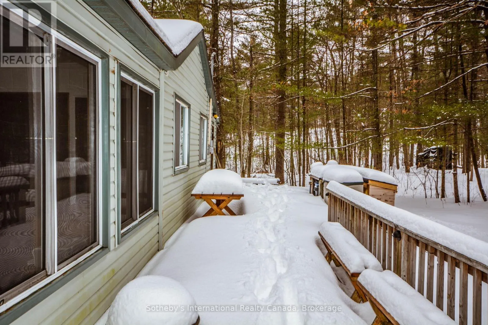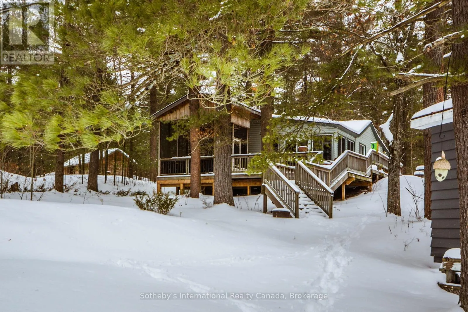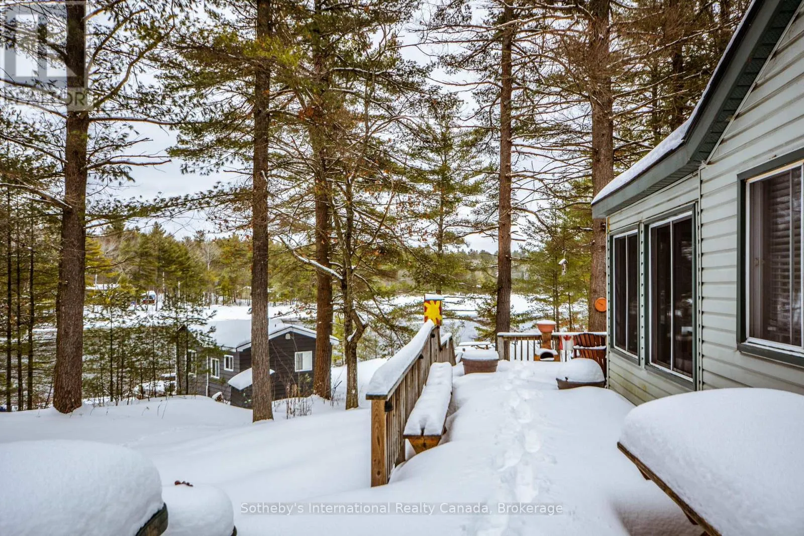 Accessed by boat only. Escape to this private 3-bedroom cottage offering 225 feet of pristine frontage on beautiful Go Home Lake. Designed for relaxed lakeside living, the cottage features a spacious living room with vaulted ceilings and a striking stone fireplace, a bright family room with a walkout to the deck, a modern kitchen, and a 3-piece bath. Step outside