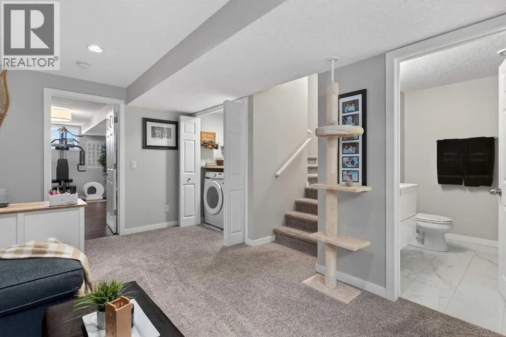 dining area & kitchen, highlighted by a modern feature wall with fireplace. The kitchen boasts quartz counters, new stainless appliances, a large pantry & a built-in wine/coffee bar buffet, making it ideal for both everyday living & entertaining. The warmth & flow of this space make it instantly feel like home.Upstairs, you’ll find three bedrooms, including a spacious primary with a full ensuite bathroom.The fully finished lower level offers a welcoming family room with a second modern feature wall & fireplace, perfect for movie nights or entertaining. This level also includes a fourth bedroom & a full 4-piece bathroom, providing excellent flexibility for guests, teens or a home office. A laundry room with new washer & dryer complete this floor.Start your mornings on the front deck overlooking a green space, offering privacy with no neighbours directly across. Then enjoy warm summer afternoons & evenings on the WEST facing private deck & lower grassy area, all within a fully fenced & landscaped backyard that’s ideal for pets, gardening or relaxing. A double detached garage plus ample street parking complete the package.This home is ideally located with bus stops just steps away, a short drive to the LRT, approximately 30 mins to downtown & quick access to Stoney Trail for easy commuting around the city or out to the mountains. The High School is within walking distance with a new K–9 school opening soon.Located in Legacy, one of Calgary’s best-planned south communities, residents enjoy walking access to scenic parks, two ponds, interconnected pathways, shops & restaurants. The ne ighbourhood is known for its strong sense of community, access to over 300 acres of environmental reserve, 12 playgrounds & four shopping hubs, including Legacy Township. In winter, Legacy comes alive with over one million Christmas lights, creating a truly magical atmosphere.This home is ideally suited for families & professionals seeking a low-maintenance lifestyle with excellent amenities, green space & everyday convenience. (id:64429)