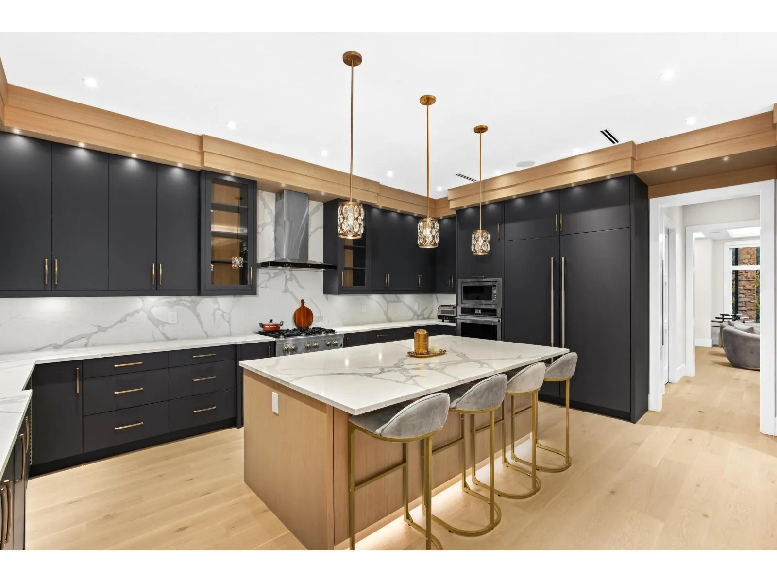 Incredible world-class contemporary mansion in desirable Fraser Heights! This stunning residence offers views of the beautiful North Shore Mountains, and is situated in a Cul-De-Sac near premier schools (public and private), shopping, parks and easy highway access. This modern estate offers multiple primary bedroom suites, spacious living and dining areas, soaring ceilings, an executive home office, an absolute show-stopper kitchen