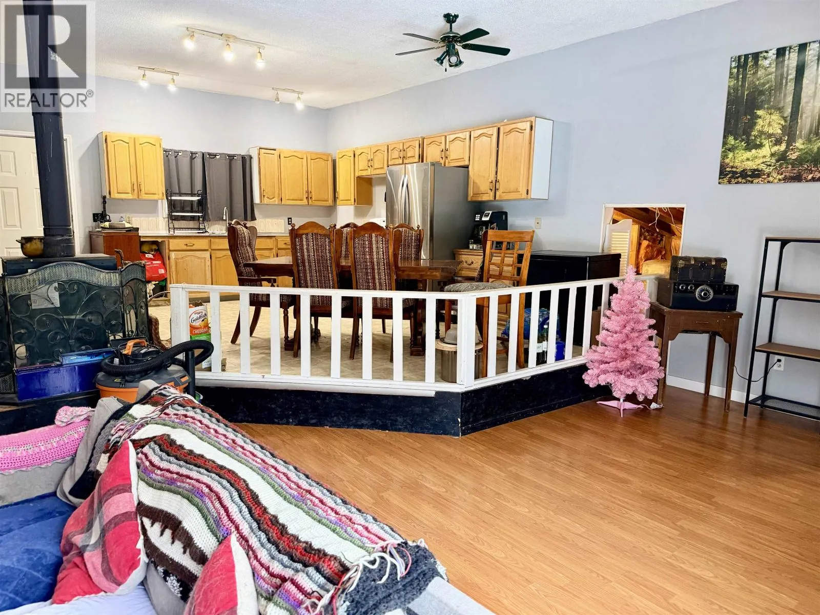 Nestled on five private, treed acres just steps from beautiful Cluculz Lake, this well-maintained three-bedroom bungalow rancher offers peaceful country living in a full-time residential setting. The home features a functional layout with three bedrooms, one bathroom, and newer appliances, providing comfort and practicality for everyday living. The property includes charming fenced garden areas, thoughtfully designed to protect plantings from