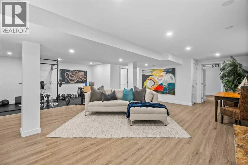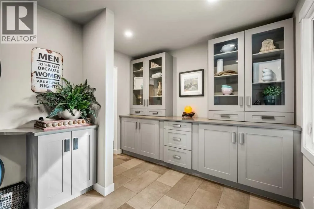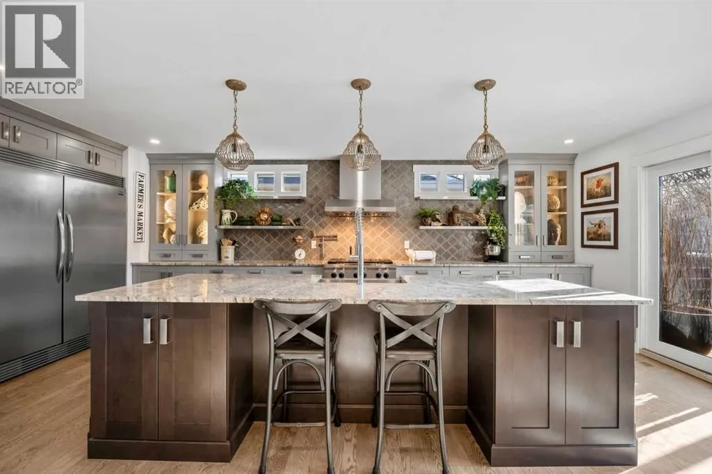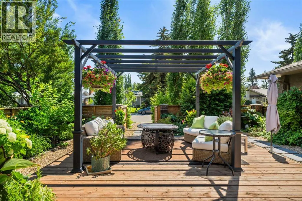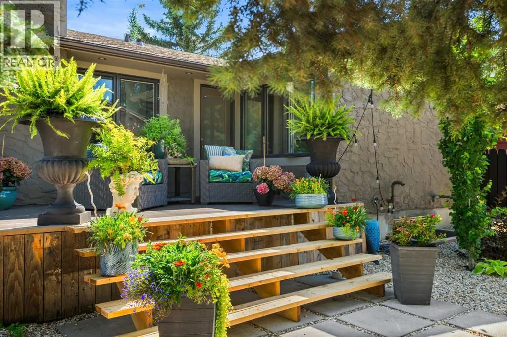 PRIVATE ZEN INSPIRED FRONT COURTYARD which must be seen to be believed – a lush, serene paradise anchored by a striking steel pergola. Framed by mature trees, vibrant planters and hanging baskets, it sets the tone for a peaceful and intentional design found throughout the home. Whether you are enjoying your morning coffee beneath the pergola or simply soaking in the stillness, the space is a daily escape. Step inside and you are greeted by an expansive open concept living area flooded with natural light framed by FLOOR TO CEILING LUX PATIO DOORS AND WINDOWS. The GOURMET inspired KITCHEN is the heart of the home, boasting a massive granite island, commercial grade appliances, including a wall mounted POT FILLER, soft-close custom cabinetry, and a stunning tile backsplash. Designer pendant lighting and curated open shelving add warmth and character. With picturesque views of the backyard and front courtyard oasis, this is a space that inspires gatherings. Whether you are unwinding by the fireplace, entertaining guests, or enjoying quiet moments, the thoughtful layout offers flexible spaces that suit every mood and moment. The main floor is home to two primary bedrooms with their own LUXURY EN-SUITES. A designer guest 2-piece powder room, a LARGE MAIN FLOOR LAUNDRY/MUDROOM also with custom cabinets is a wonderful addition, which leads to the attached double garage. Head downstairs through a vintage style sliding barn door and discover a professionally finished lower level that expands your living space in style. The basement features a spacious family/media room with a stunning stacked stone wood burning fireplace, luxury vinyl plan k flooring, and pot lighting throughout. A dedicated home gym area, designed to inspire, two additional well size bedrooms, a three-piece bathroom and ample storage complete this floor. But it is outside, where this home truly shines. Imagine sun-drenched afternoons, relaxing or enjoying a glass of wine on the stunning courtyard area beneath the Pergola followed by evening barbeques on the expansive deck under the stars. This fully fenced backyard offers not just space, but an experience, complete with lush landscaping, lounging areas, and ultimate privacy, thanks to its tree lined surroundings. The home was renovated from the studs, including new electrical systems, two furnaces, and additional updates. Living here means being steps away from Fish Creek Park walking and biking trails, with The Bow Valley Ranche, Annie’s Cafe and Park 96, while still enjoying quick access to Deerfoot Trail. (id:62650)