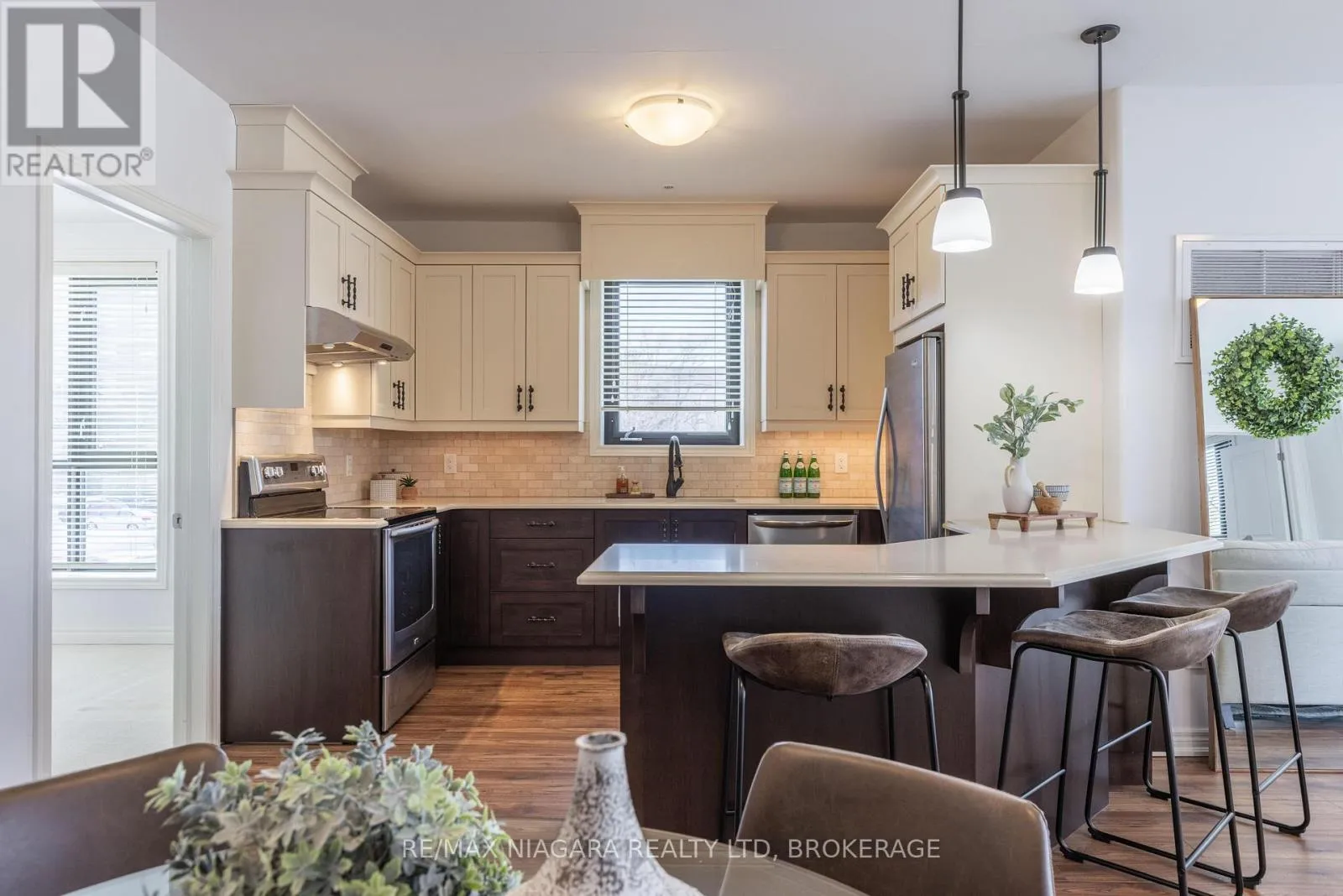 Welcome to 379 Scott Street in the highly sought-after North End of St. Catharines! Suite #209 is one of the building’s largest at 1,205 sq. ft.. From the moment you step through the door, you’ll be greeted by a warm and inviting foyer that leads into the open-concept main living space. Bathed in natural light from North West/West-facing windows, the