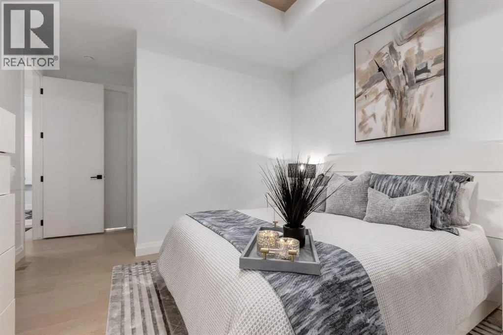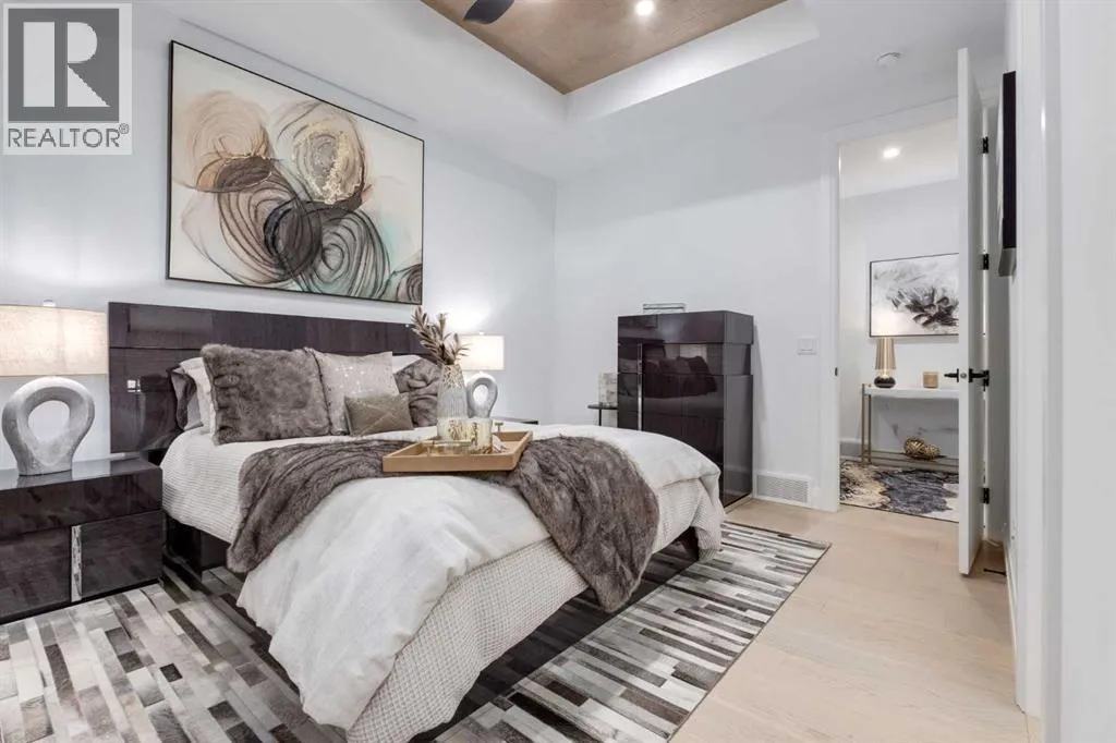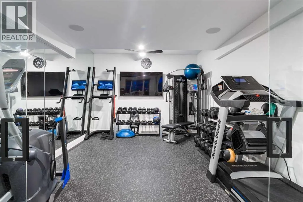 inch of the nearly 4,500SF of living space was meticulously designed and decorated with intention, creating a true sanctuary that feels like a work of art. Soaring ceilings, white oak engineered hardwood floors, hardwood coffered ceiling details and the most spectacular designer lighting are only a few features that make this home so spectacular. The ‘chef’s kitchen’ features top-of-the-line Thermadore appliances including a multi-function built-in coffee and espresso machine and a dual zone beverage cooler. Custom features such as internal cabinet drawers, spice pullouts and a fabulous walk-through butler’s pantry leave nothing to be desired. A vaulted ceiling in the great room boasts a stunning floor-to-ceiling fireplace and a ‘showpiece’ staircase and masterfully displays the amazing Southerly view. A spacious dining area, a private home office and a mudroom outfitted with lots of custom storage combine beautiful design with perfect functionality. The upper level features a bright and open bonus room, two additional bedrooms, each with a walk-in closet and an ensuite bathroom and a spa-like primary suite with his-and-hers closets, one of which is connected to the incredible laundry room. The fully finished lower level boasts a fourth bedroom and bathroom, a ‘professional’ home gym, a games room and a media room with a fireplace and a wet bar. The heated triple attached garage, outfitted with epoxy flooring, custom storage, a work bench and cabinets, is every hobbyist’s dream. A six-person hot tub sits on an aggregate covered rear patio, an upper balcony with glass railing overlo oks the views, a twelve-burner plus griddle BBQ station and a plumbed in natural gas fire table are all located in places to relax outside and admire the breathtaking view. Heated floors in all the bathrooms, Hunter Douglas programmable motorized solar shades and a high-end Elan smart home system that encompasses everything from security to lights to music and televisions, set this home apart from any other. This home offers something special for every stage in life. (id:64429)