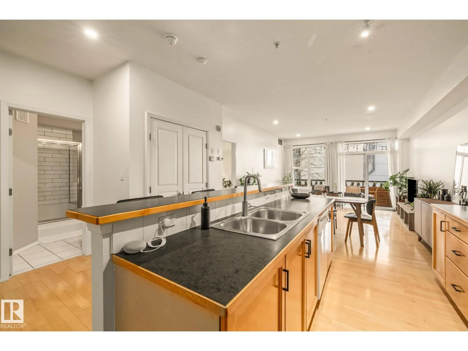 Welcome to Grandin Court! A prime downtown condo just steps to the River Valley and Grandin LRT Station, with quick access to the University of Alberta, Jasper Avenue, and downtown core. This bright, freshly painted unit features an open concept layout with large south-facing windows and a spacious balcony showcasing beautiful River Valley views! The generous living area is perfect