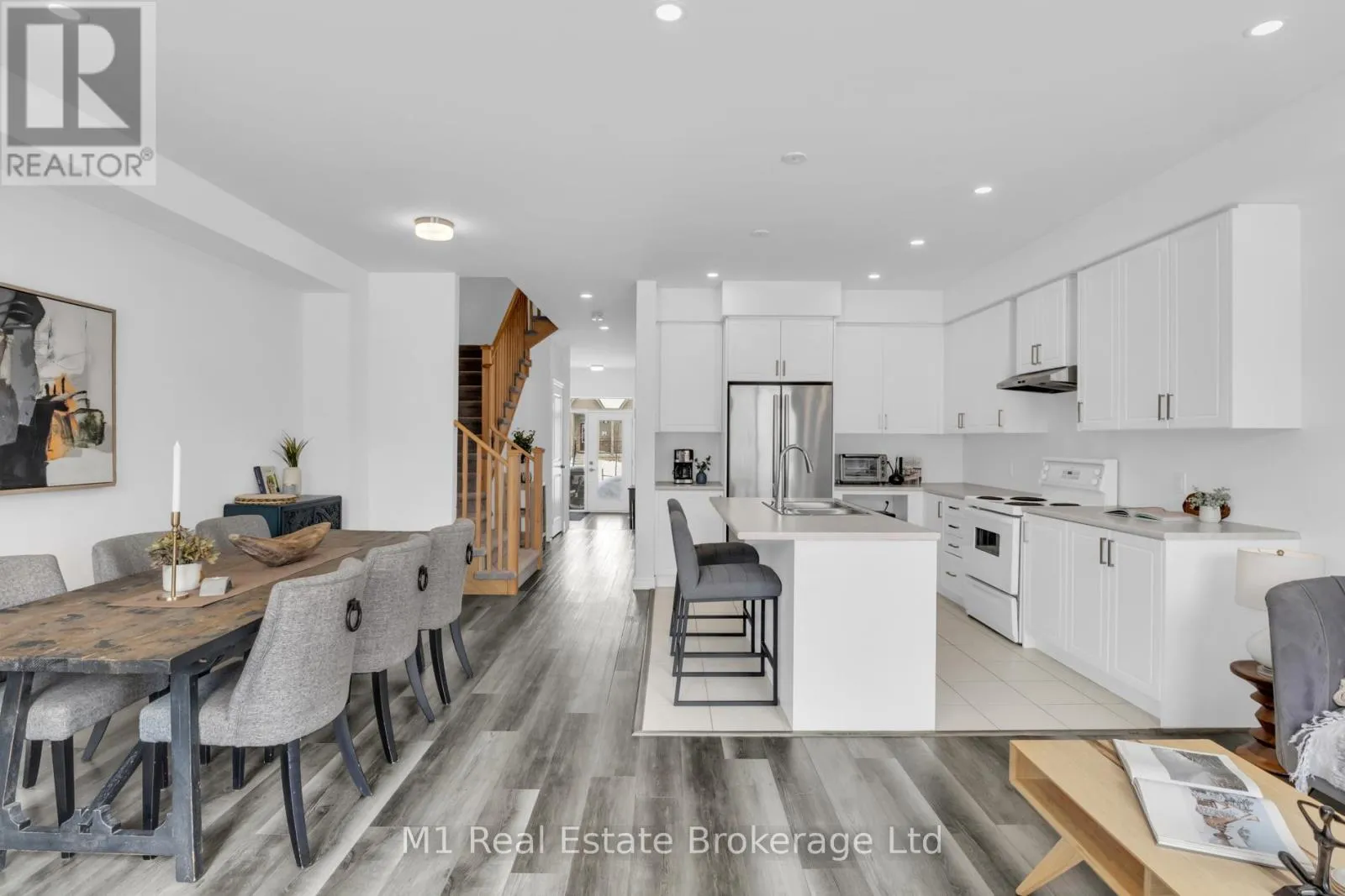 Welcome to 197 Farley Road, a well-designed freehold townhome located in the desirable Storybrook community of Fergus. This modern two-storey home offers approximately 1,742 sq. ft. of finished living space with three bedrooms and three bathrooms, providing a practical layout suited to everyday living. The main floor features a bright, open-concept design anchored by a contemporary kitchen with ample cabinetry,