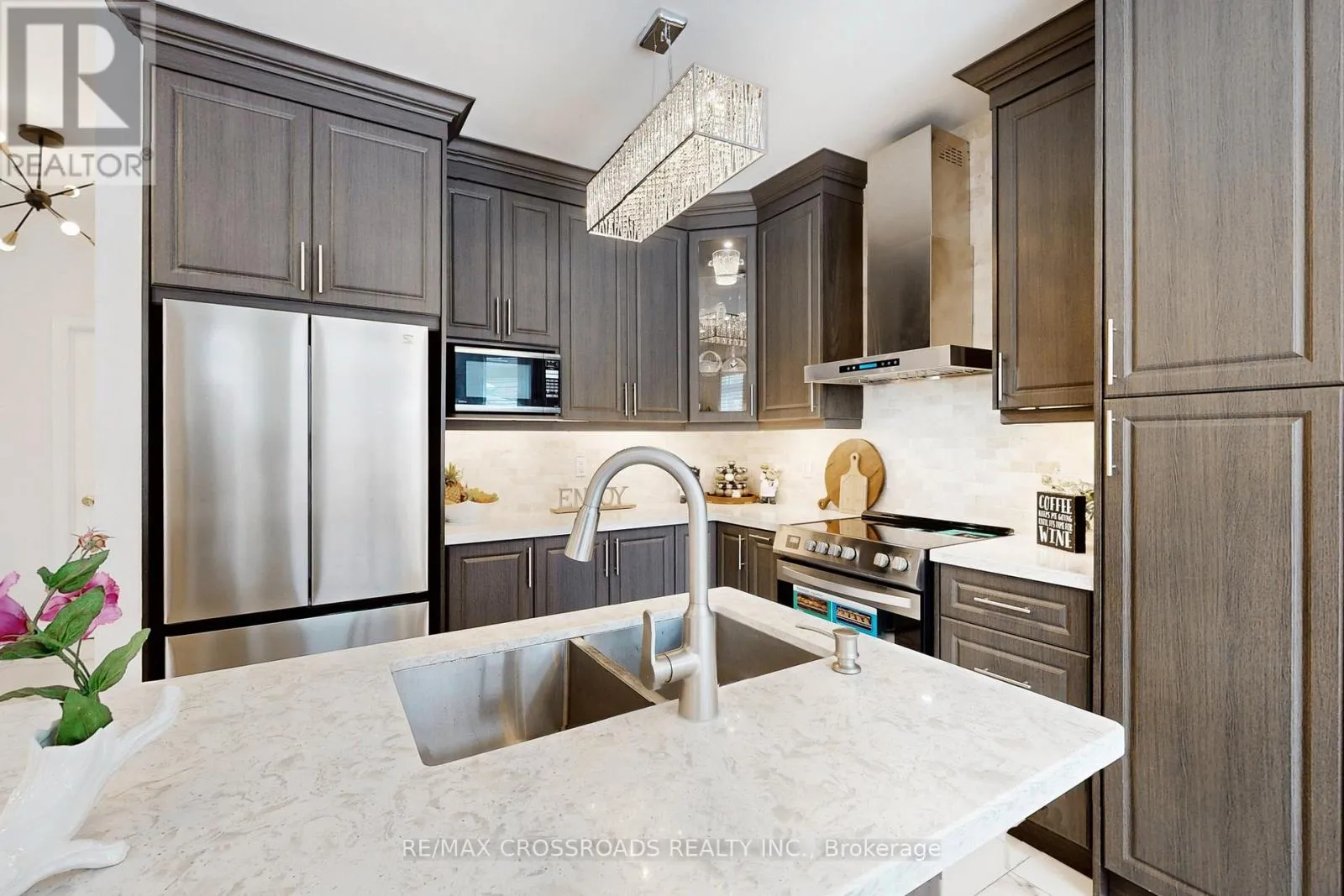 Pride of ownership in Vellore Village, Vaughan. Beautifully updated, sun-filled home featuring 9-ft flat ceilings, hardwood flooring throughout, pot lights, and California shutters on the main floor. Bright, functional layout offers privacy and comfort for family living. Modern gourmet kitchen with central island, brand new refrigerator, induction stove, breakfast area, and walk-out to garden. Spacious primary bedroom with walk-in closet