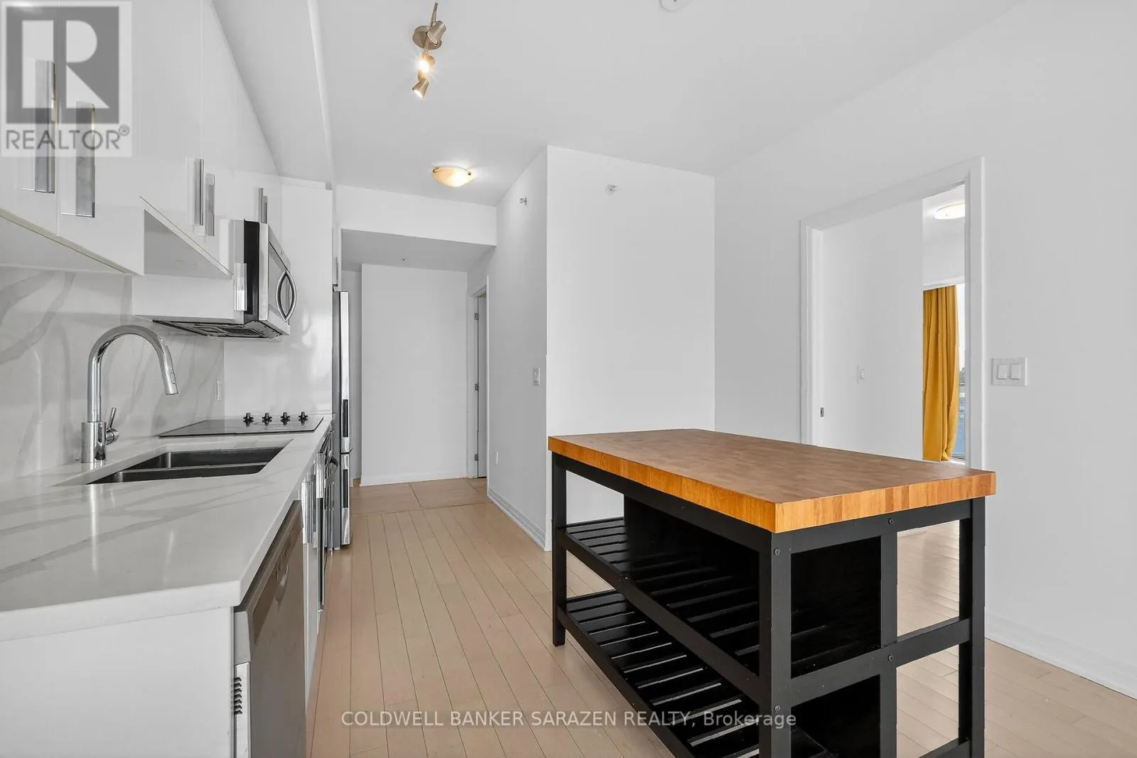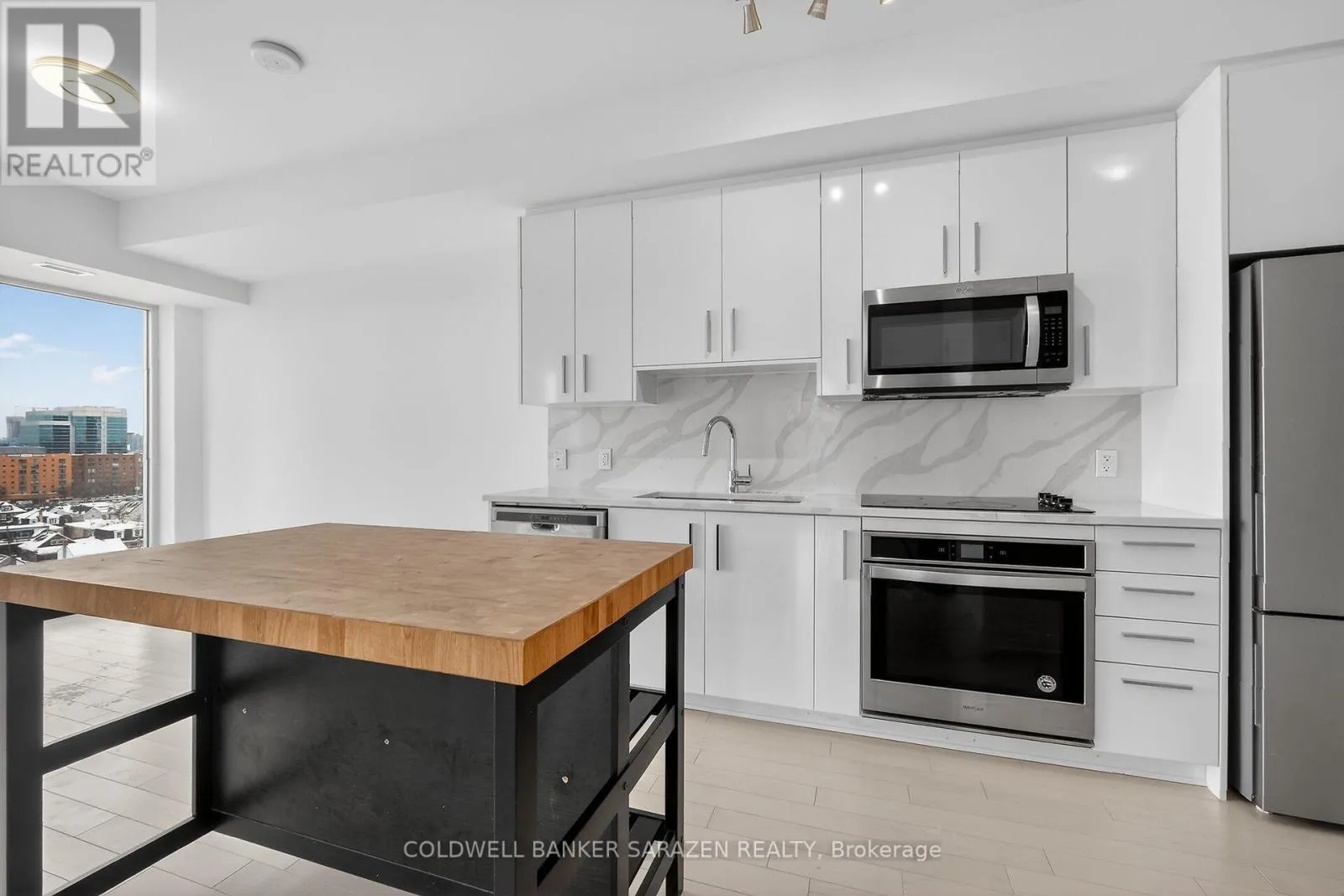Perched on the 8th floor, this stunning 2-bedroom, 1-bath corner condo offers spectacular views of the Gatineau Hills to the north and vibrant sunsets to the west. The bright, open-concept living space has been freshly painted and thoughtfully designed with premium finishes, including white oak hardwood floors, wall-to-wall windows, and soaring 9-foot ceilings. The chef-inspired kitchen features white cabinetry, quartz