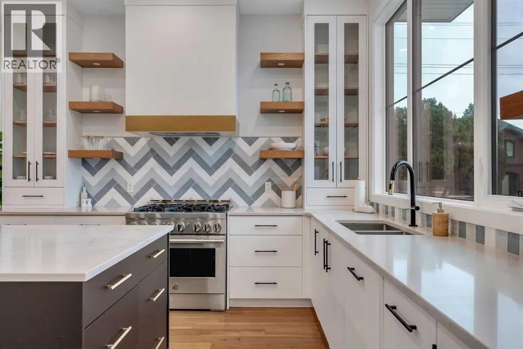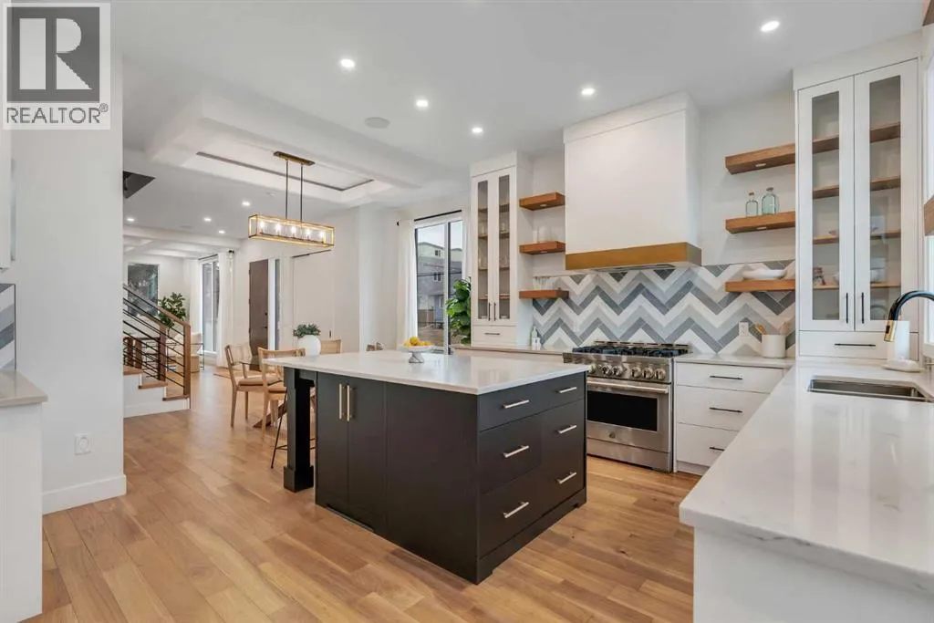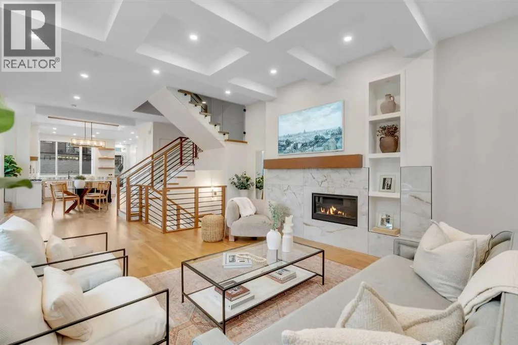 Set on a prime corner parcel in Altadore, this upscale modern farmhouse blends architectural presence with refined, highly functional design. With over 2,800 sq ft of professionally curated living space, this four-bedroom, 3.5-bath residence delivers the kind of layout and finish level discerning buyers expect in one of Calgary’s most sought-after inner-city communities. Step inside and you’re greeted by soaring
