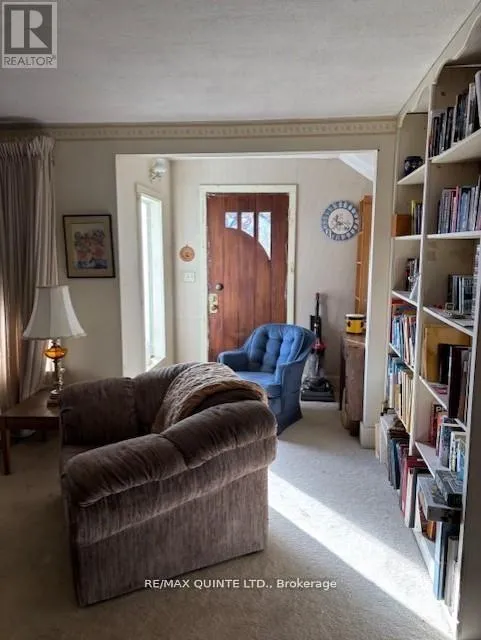 Corner lot in Madoc. 4 bedrooms, 2 baths. Eat in kitchen, Separate dining room with French doors to Living Room with Fireplace (gas insert), 2 bedrooms on main floor with 4 pc bath and 2 bedrooms up, main floor Family Room with gas fireplace and 2 pc bath with patio doors to deck and back yard. Gas furnace with two