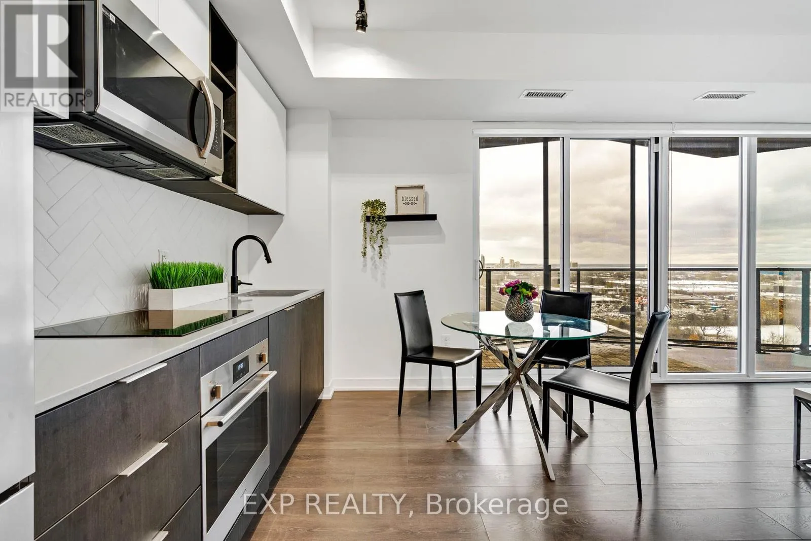 Welcome to 36 Zorra, where contemporary style and everyday convenience come together in the heart of The Queensway. This beautifully upgraded 3-bedroom, 2-bath corner suite combines over $13K in enhancements with thoughtful design and an inviting layout. Enjoy 9′ smooth ceilings, floor-to-ceiling windows, and an expansive wrap-around balcony offering clear views of the lake and skyline. The modern kitchen boasts