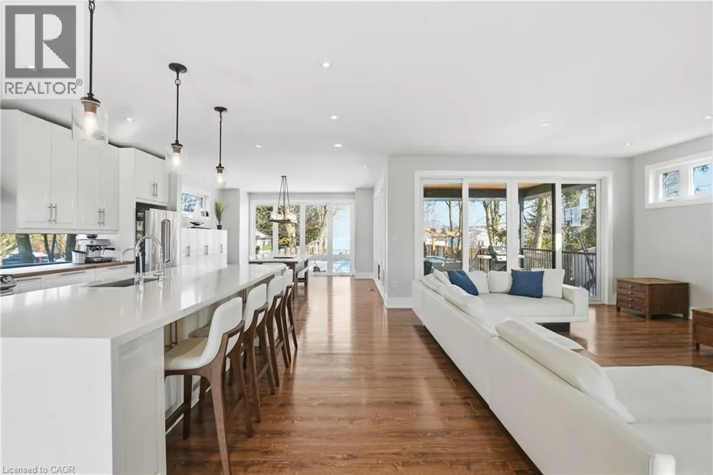 Perfectly positioned in one of Stoney Creek’s most coveted waterfront communities, 20 Lakeshore Drive delivers a truly elevated lakefront lifestyle. Newly built in 2018, this exceptional residence is designed to celebrate its setting, with panoramic views stretching across Lake Ontario to the Toronto skyline and unforgettable sunsets as your daily backdrop. The rear of the home is a striking wall