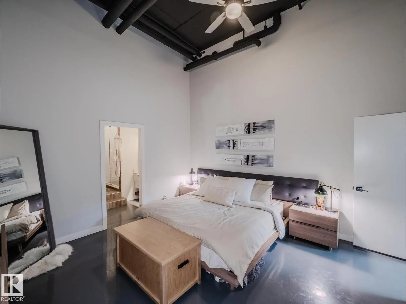 Discover this stunning downtown Edmonton PENTHOUSE LOFT featuring soaring 14-foot ceilings and an impressive open concept design. The spacious kitchen offers ample counter space, abundant storage, DUAL FRIDGES, and STAINLESS STEEL APPLIANCES—perfect for entertaining. The bright living room boasts large windows that flood the space with natural light and connect seamlessly to the open-to-below loft, ideal for an office or