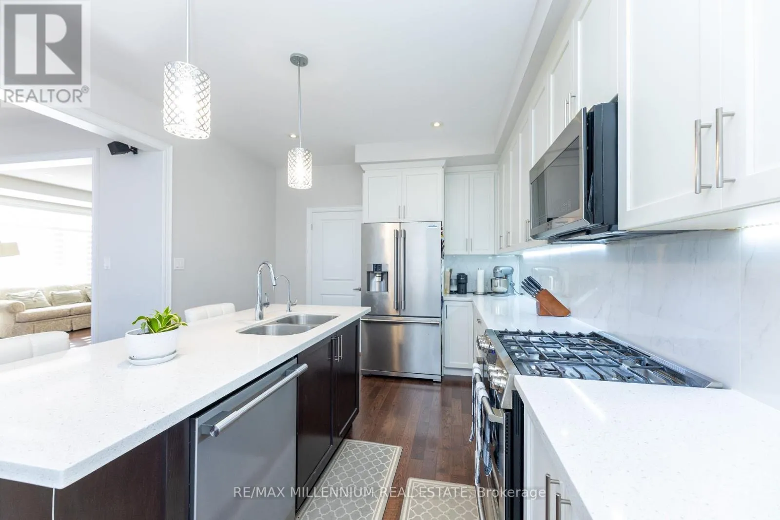 FULLY UPGRADED! Gorgeous corner lot with abundant natural light! Brand New Paint, Pot Lights, Gas Line For Bbq, Hardwood Floor Through Out And A Lot More. Spacious main floor layout with 2nd floor Corridor office space!! 4 Bedrooms, all with direct washroom access! PREMIUM LOT, No Side Walk. Close To HighWay 404, Close To Upper Canada Shopping Mall, Parks, Restaurants