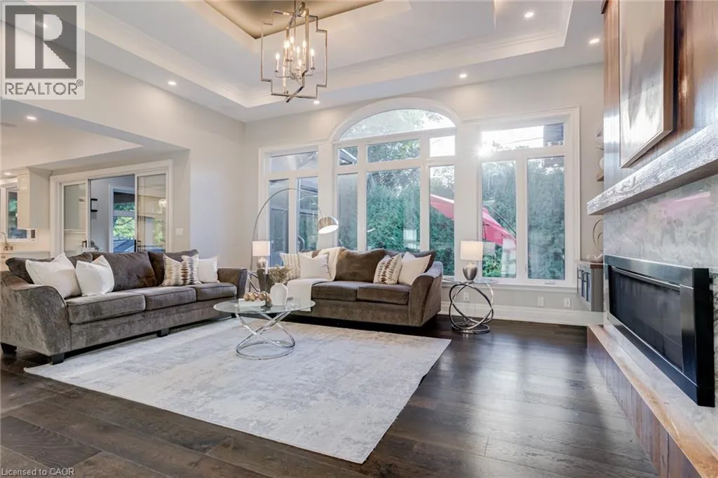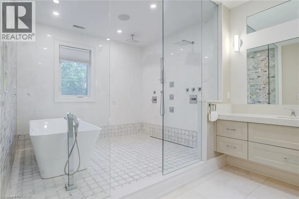 This multi-generational luxury dream home blends timeless design with superior craftsmanship, offering over 8,850 sqft. of finished living space with 7 bedrooms and 8 bathrooms on a 135-ft-wide lot in Ancaster’s prestigious Oakhill neighbourhood. Surrounded by mature trees and estate homes, the property showcases two separate garages, parking for 20+ vehicles, professional landscaping, and a commanding architectural façade. Inside, a