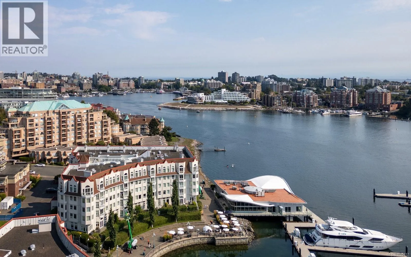 Soaring 11-foot ceilings set the tone for this chic and spacious Corner Penthouse in the prestigious Royal Quays, located in the heart of the Songhees. With 1,572 sq. ft. of updated living space, this 2-bedroom, 2-bathroom home blends style and comfort with ocean glimpses—watch the float planes and kayaks go by, and enjoy the twinkling downtown lights in the evening.