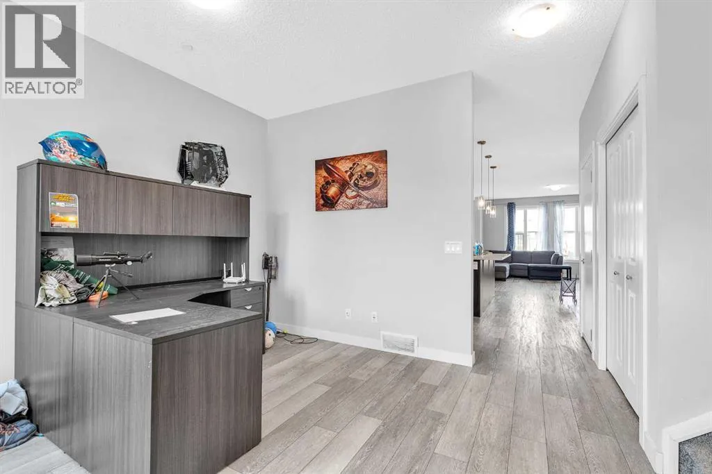 Welcome to 349 Calhoun Common NE in the desirable community of Livingston. This stunning detached home features a bright open layout with a spacious living room, dining area, powder room, and office. The upgraded kitchen is complete with full-height cabinets, pantry, built-in oven and microwave, electric cooktop, refrigerator, dishwasher, and a stylish chimney hood fan.Upstairs, the large primary bedroom