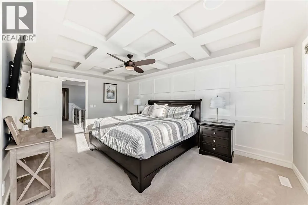 Welcome to 35 Mahogany Crescent SE, a meticulously maintained home in one of Calgary’s most desirable lake communities. Offering over 3,500 sq. ft. of fully finished living space, this residence features 5 bedrooms, 3.5 bathrooms, a fully finished basement, and no side or rear neighbours for exceptional privacy.The open-concept main floor showcases a stunning feature fireplace, coffered ceilings, in-ceiling speakers, and