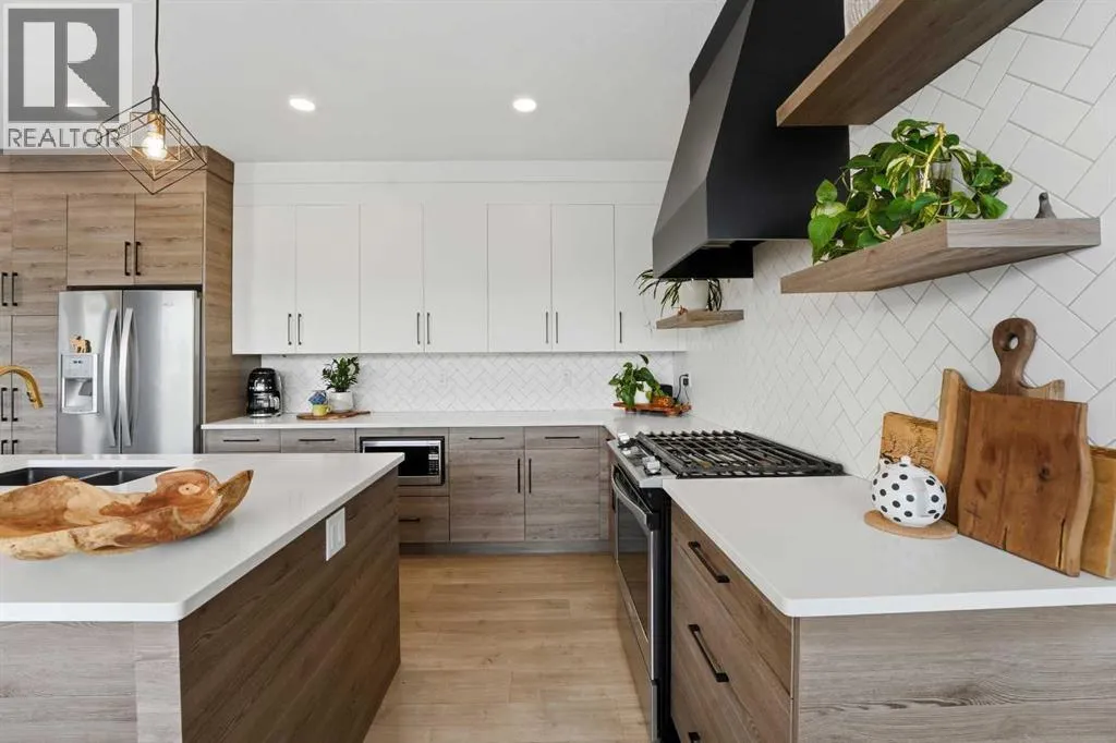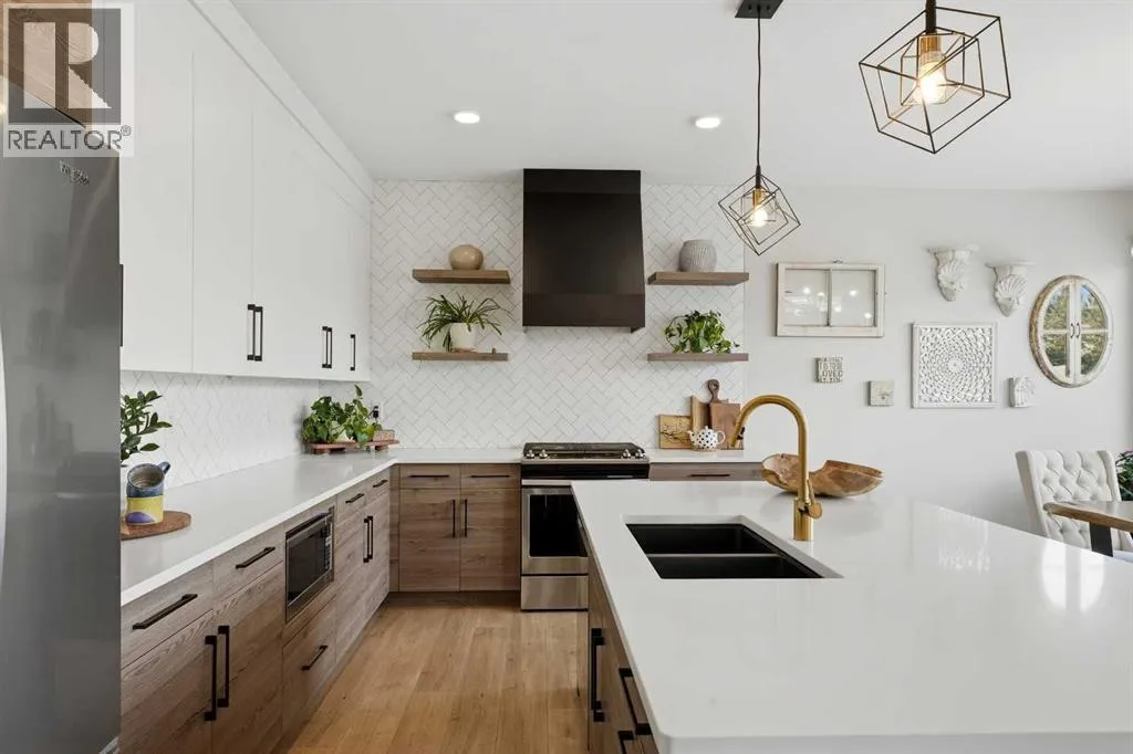 Set on a quiet, tree-lined street in a community known for character-rich properties, this beautifully finished two-storey offers a home that feels elevated yet comfortable for everyday living. The kitchen is a true showpiece featuring quartz countertops, two-toned cabinetry, a wall pantry, and striking herringbone tile backsplash. The spacious dining area with its wall of windows provides access to the