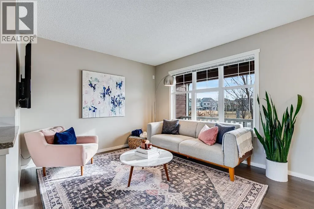 OPEN HOUSE SUNDAY FEBRUARY 8TH @ 1-3PM. This no–condo fee townhome in Mahogany offers the lifestyle everyone wants. Steps to the beach, lake views from both the front and back, a private landscaped yard, and a double detached garage.The open-concept main floor features hardwood floors, a bright living space, and a modern kitchen with quartz countertops and stainless steel appliances,