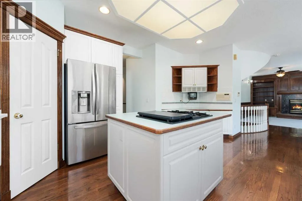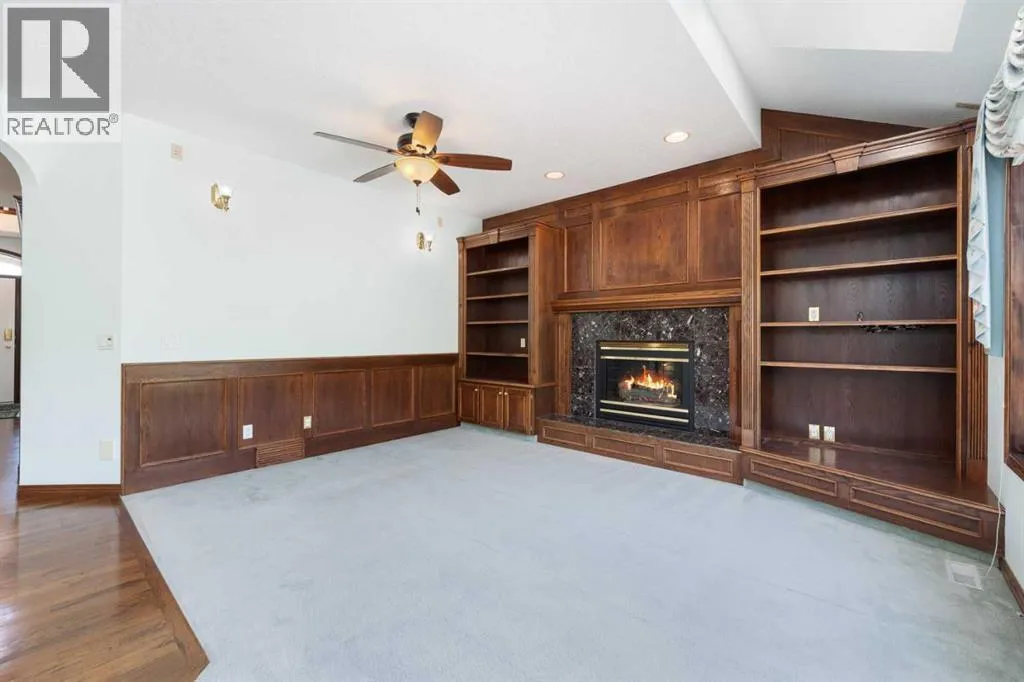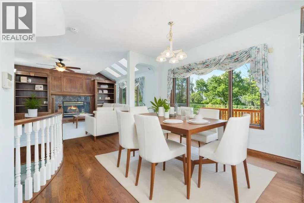 nature right outside your back yard! This home was carefully custom built by a European master craftsman and is offered for sale by the original owner. As you enter, you are greeted by soaring ceilings, generous sized entryway with a den/flex room at the front of the house and a dining room with a built in china cabinet on the other side of the entryway. As we make our way through the entry you have a formal dining room (could double as a den with glass doors for privacy) through to the main living areas you have a gorgeous living room with a fireplace, custom built ins and THREE skylights! The kitchen offers the best views to the west of the yard and Fish Creek, ample counter and cabinet space, gas cooktop, wall oven, corner pantry and tiled backsplash! The main floor is completed with a half bath, mud room with laundry and a sink and access to the MASSIVE double garage that can easily accommodate 3-4 vehicles (and it has heated flooring and a drain!) Let’s make our way up the elegant curved staircase to the Primary suite that has a walk in closet, a double sided fireplace, dual sinks in the vanity, separate shower and tub with the most amazing views! (You will fall in love!) In addition to the primary bedroom there are THREE more bedrooms and two of them have ensuite bathrooms and there is also a full bathroom upstairs! The huge basement is awaiting your creative ideas and has plenty of room for future development! Other amazing features are the hail resistant upgraded shingles, the 1 year old massive deck, low maintenance yard (no grass), gas firepit in the back yard, custom woodwork throughout this home, heated floors in the basement and garage, 2 furnaces and 2 hot water tanks, Fish Creek and Mountain views and gleaming hardwood flooring on the main floor! You are also just minutes away from Stoney Trail, tons of the areas amenities, parks, playgrounds and schools! This home offers the perfect blend of luxury custom built finishes, functional upgrades and an unbeatable location! Whether you enjoying a quiet morning coffee with park views, hosting a summer BBQ by the firepit or warming up by one of the fireplaces – this property is thoughtfully designed for comfort, style and a wonderful home to raise your family in! (id:64429)
