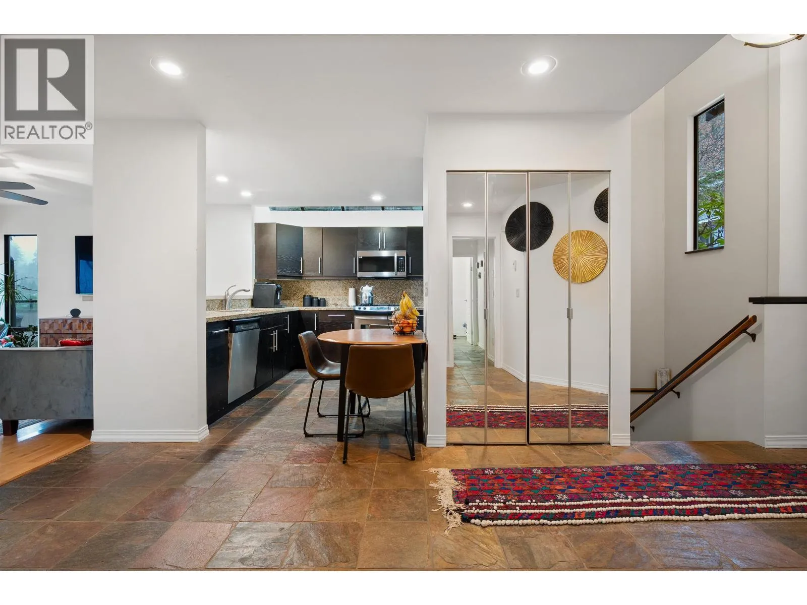 Tucked away on a quiet cul-de-sac in the heart of Grousewoods, this beautifully maintained reverse plan 1/2 Duplex invites you into spacious comfort and stunning southwest views of water and mountain. Vaulted ceilings, warm hardwood and slate floors and a bright solarium upstairs set the stage for open concept living and entertaining. Downstairs, three generous bedrooms including the primary bedroom