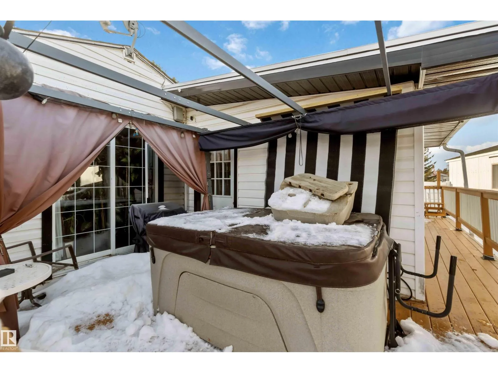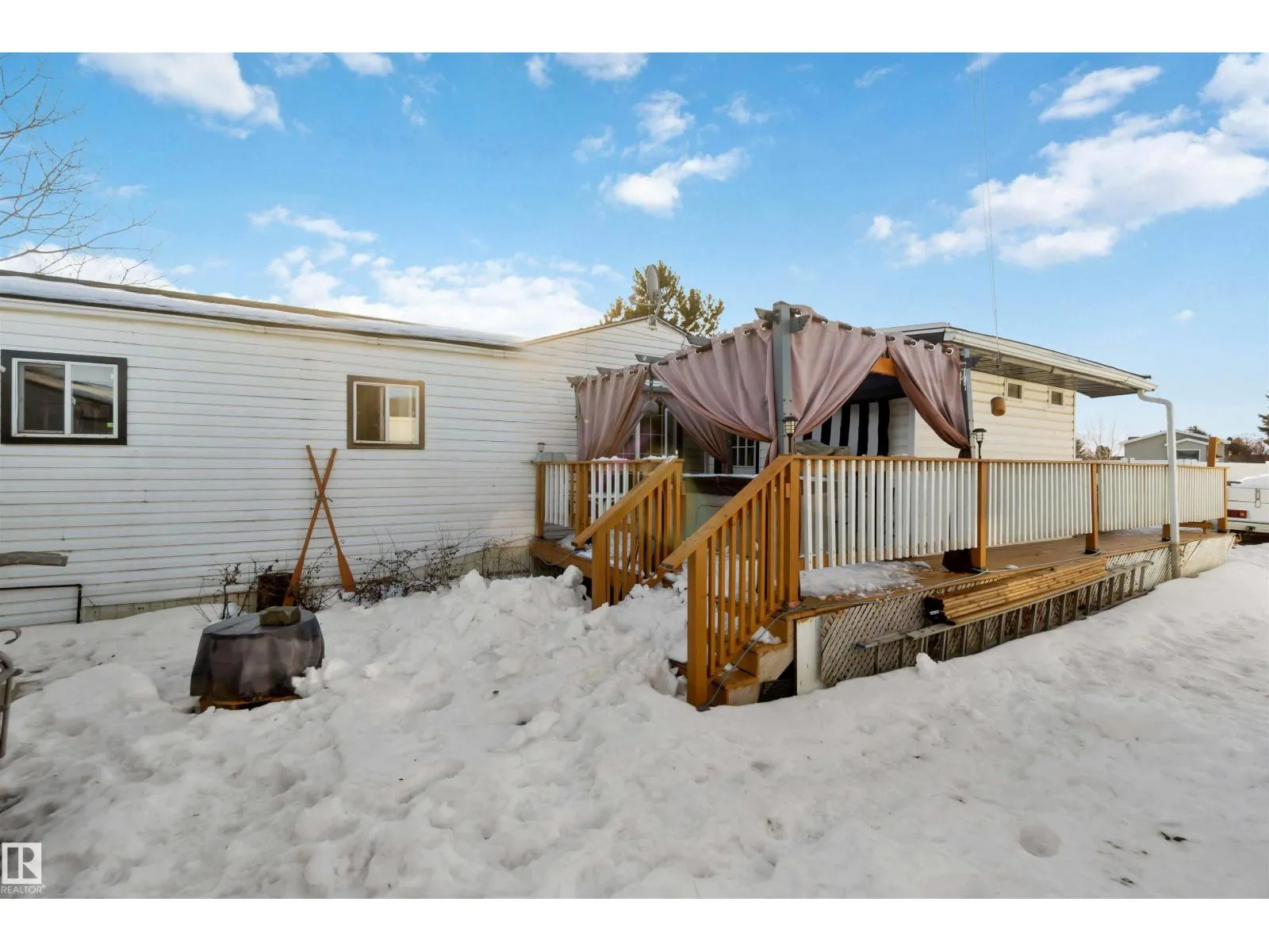 Welcome home to this 3 bed, 2 bath home on leased land in Westview Village, Edmonton’s finest community living. This home features a wrap-around deck with a propane fireplace and natural gas hookup, plus a private hot tub under a gazebo. A large detached workshop at the rear offers the perfect space for an art studio, man cave, or hobby