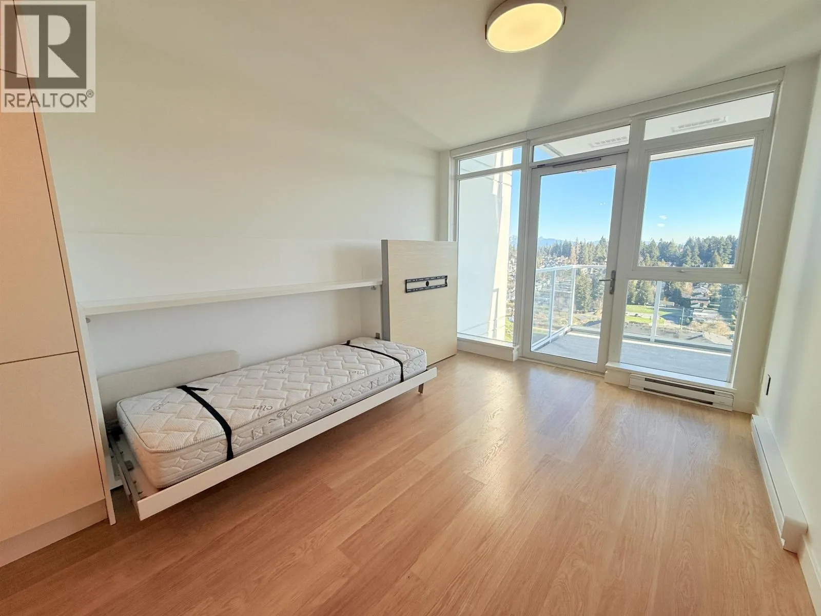 Live resort-style at Lougheed Heights 2 by renowned BOSA/BlueSky. This bright east-facing 1-bed home features an efficient open layout, floor-to-ceiling windows and a covered balcony for morning light. A functional kitchen and dining space flows into a comfortable living area. Also features a built-in bed for roommate or guest, slide out dining table for 4, sliding TV wall and built-in