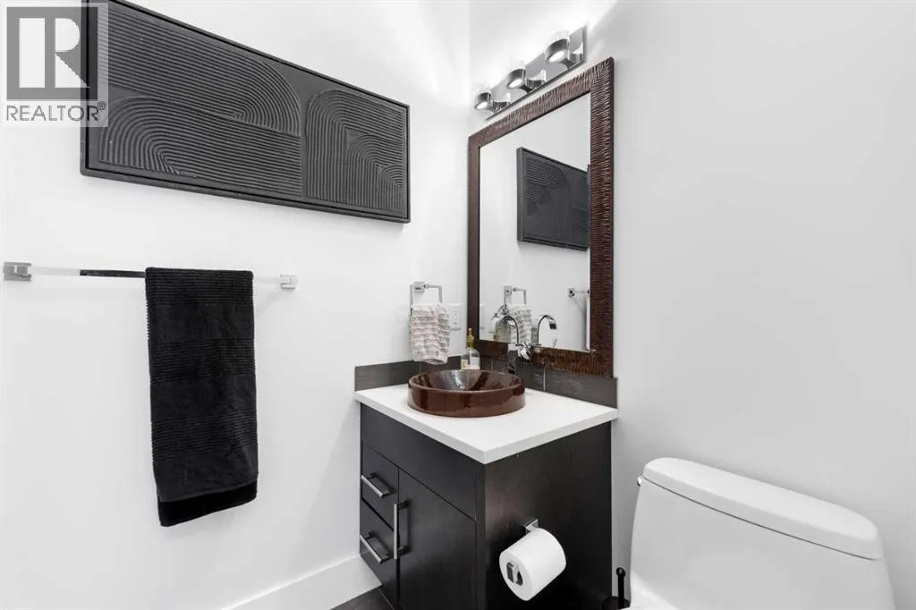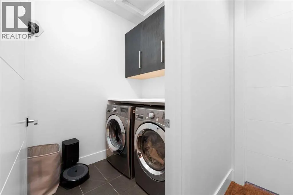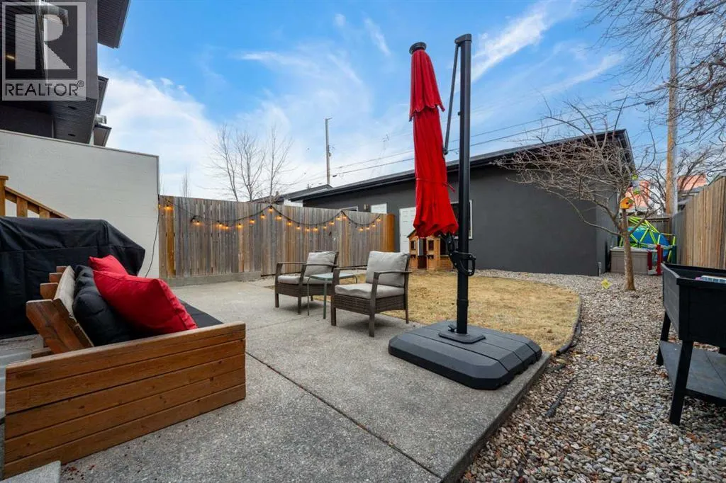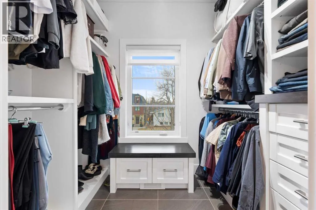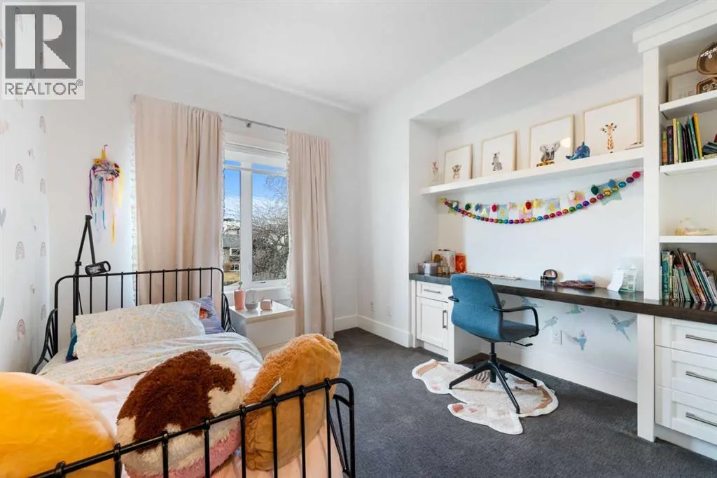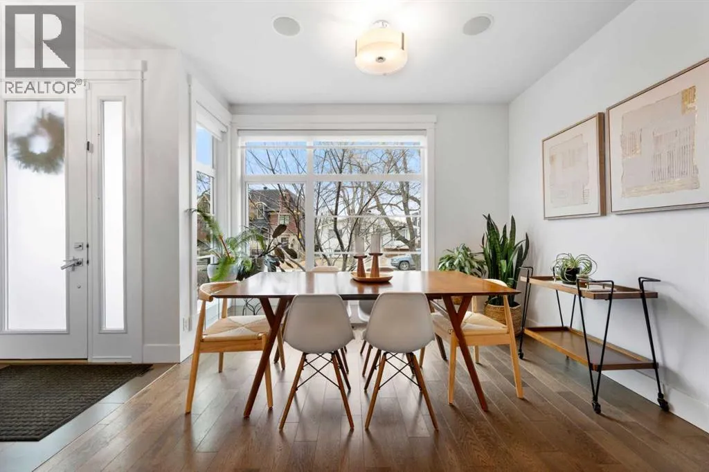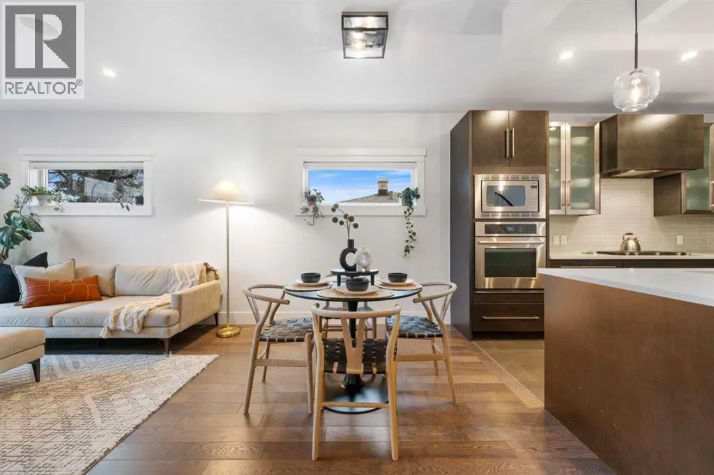 by expansive windows, soaring 9’ flat painted ceilings on every floor, and an abundance of pot lights. The gourmet kitchen is a chef’s dream, showcasing quartz countertops throughout, a massive island, loads of drawer storage, sleek custom cabinetry, stainless steel appliances, and a gas range—perfect for both entertaining and daily living. On one side the spacious dining area and the other a cozy yet sophisticated living room, anchored by a striking gas fireplace with custom built-ins. A separate mudroom and stylish powder room complete the main floor. Upstairs, the primary retreat is a true sanctuary, spacious enough for a king-sized bed and featuring a boutique-hotel-inspired ensuite with double vanities, a soaker tub, an oversized glass steam shower, in-floor heating and a custom walk-in closet with built-in organizers. Two additional generously sized bedrooms—one with a custom built-in desk—are complemented by a beautifully appointed full bathroom and convenient upper-floor laundry. The fully finished lower level expands your living space with an additional bedroom and full bathroom, plus a large family room complete with a wet bar, beverage fridge, custom entertainment unit, and room for a home gym, movie nights, or hosting guests. In-floor heating ensures year-round comfort. Superior finishes throughout include stunning wide-plank hardwood flooring, while thoughtful upgrades such as a home audio system with built-in speakers and irrigation add everyday ease. The double detached garage features 10’ ceilings for extra storage potential and an 8’ high doo r for easy access. Designed for effortless indoor-outdoor living, the home opens to a private, low-maintenance fenced backyard—ideal for BBQs, lounging, or dining al fresco on the concrete patio through expansive glass patio doors. Perfectly situated in desirable Killarney, just steps from Holy Name School, one block from a green space and park, and minutes to trendy cafés, boutique shopping, downtown, and the C-Train. This is the ultimate executive home for those seeking luxury, style, and a truly effortless urban lifestyle. (id:62650)
