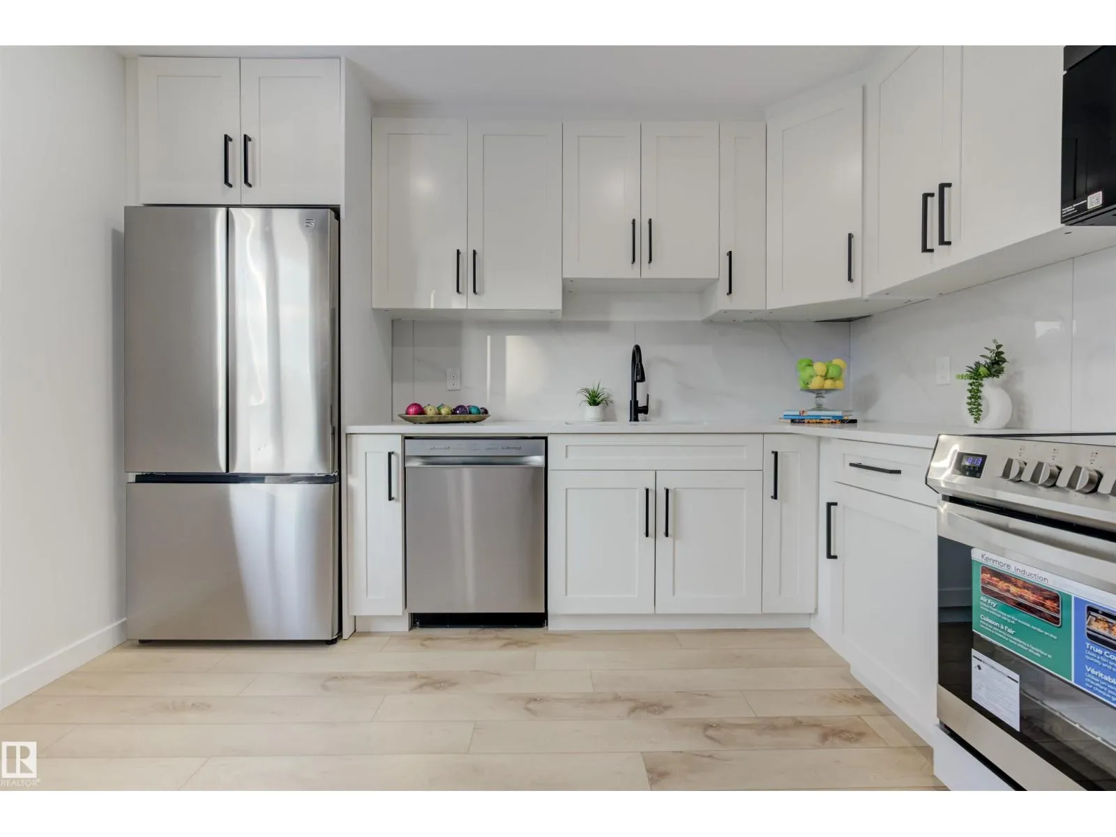 Welcome to this beautifully updated home complete with a carport. The main floor boasts a stunning new kitchen featuring quartz countertops, tile backsplash, brand-new appliances, and a convenient pot filler faucet above the stove. The spacious, sunlit living room showcases a feature wall with a modern electric fireplace. Complemented by all-new luxury vinyl plank flooring, plush carpet, custom railing, updated