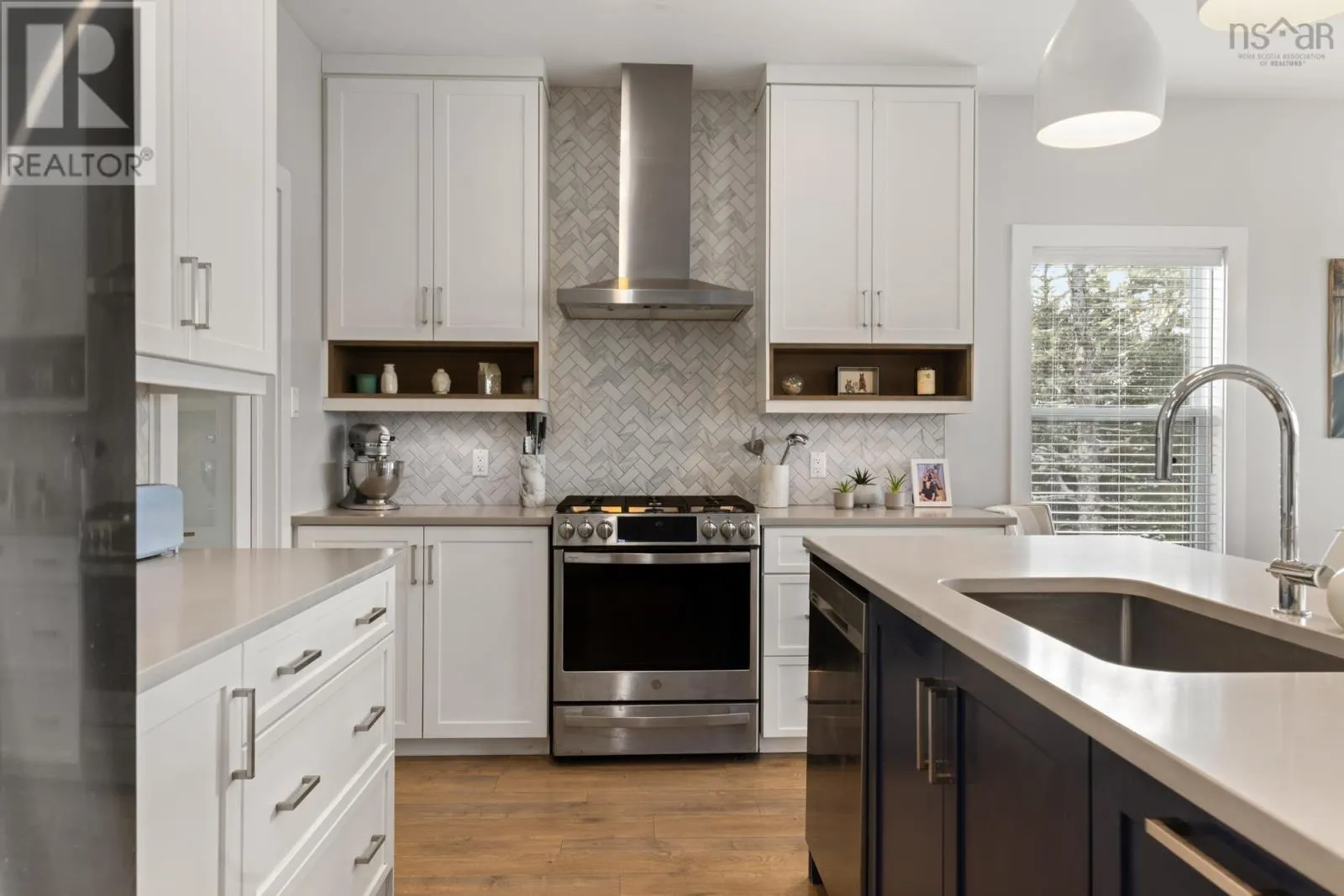 Stunning oceanfront home in Whites Lake, offering breathtaking views of Prospect Bay & ideal access for boating, kayaking, & coastal exploration. This elegant 2-storey is fully finished on all 3 levels & features a ducted heat pump & propane fireplace for year-round comfort. The open-concept main level is designed for effortless entertaining, showcasing a chef-inspired kitchen with quartz countertops, centre