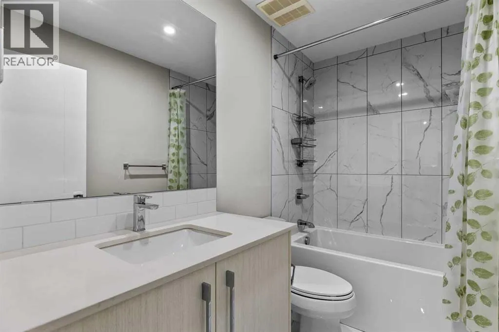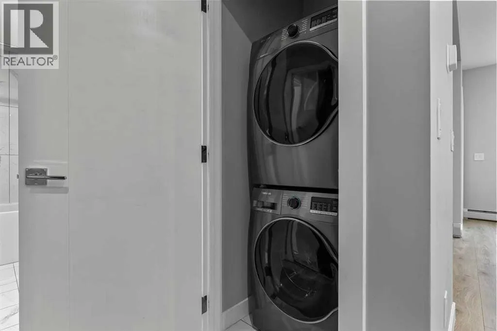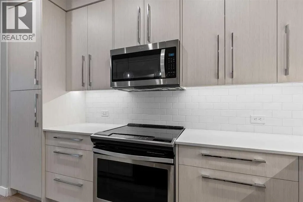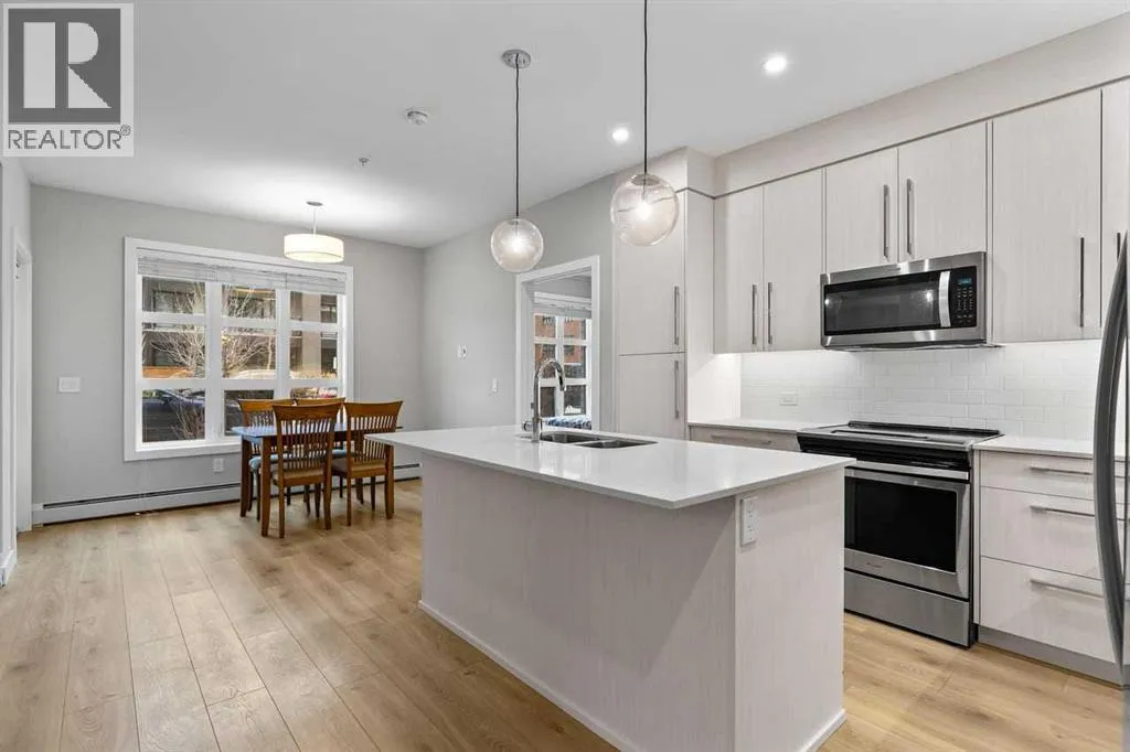 lifestyle.Unit 107 is a convenient main-floor condo with direct access to the covered patio and walking paths; ideal for easy comings and goings or running a quick errand. This 728 sq ft home features an open-concept floorplan with 9-foot ceilings, engineered hardwood flooring, and large triple pane picturesque windows. The modern kitchen includes quartz countertops, stylish cabinetry, a designer backsplash, and stainless steel appliances. The large island is perfect for casual meals or prepping a beautiful dinner at home. The dining area is spacious and also great for hosting family visits or playing cards with the grandchildren. The kitchen and dining area open to the living room, creating a comfortable space to relax at the end of the day. The generously sized bedroom includes a walk-through closet and a spacious 4-piece ensuite. A second full bathroom adds extra convenience for any guests. This unit also includes in-suite laundry and your own titled, heated underground parking stall.The Maple building includes a heated underground parkade, plenty of visitor parking, elevators, and thoughtful “aging in place” features such as wide hallways, accessible entrances, and automated doors. Residents will also enjoy a beautifully landscaped courtyard with inviting seating areas.Living in the University District makes everyday life incredibly convenient. From groceries and banking to coffee dates and evening movies, everything is close by. Save-On-Foods, Staples, Shoppers Drug Mart, Cineplex, COBS Bread, Monogram Coffee, Market Mall, and a variety of cafés, resta urants, and shops along Main Street are all within easy walking distance. With more amenities opening all the time, the University District continues to stand out as one of Calgary’s most vibrant and walkable communities.Next door is Cambridge Manor, a neighbouring residence offering independent and supportive living services. Maple residents are able to access select lifestyle and recreation amenities at Cambridge, including a bistro café, fitness centre, and a variety of fitness classes. A hair salon is also available, along with organized social activities such as coffee club, card games, crib club, drum circles, concerts, movies and documentaries, and special holiday meals.Whether you’re looking for a lock-and-leave lifestyle or a welcoming community to enjoy year-round, Unit 107 at Maple is an outstanding opportunity in one of Calgary’s best urban neighbourhoods. (id:62650)