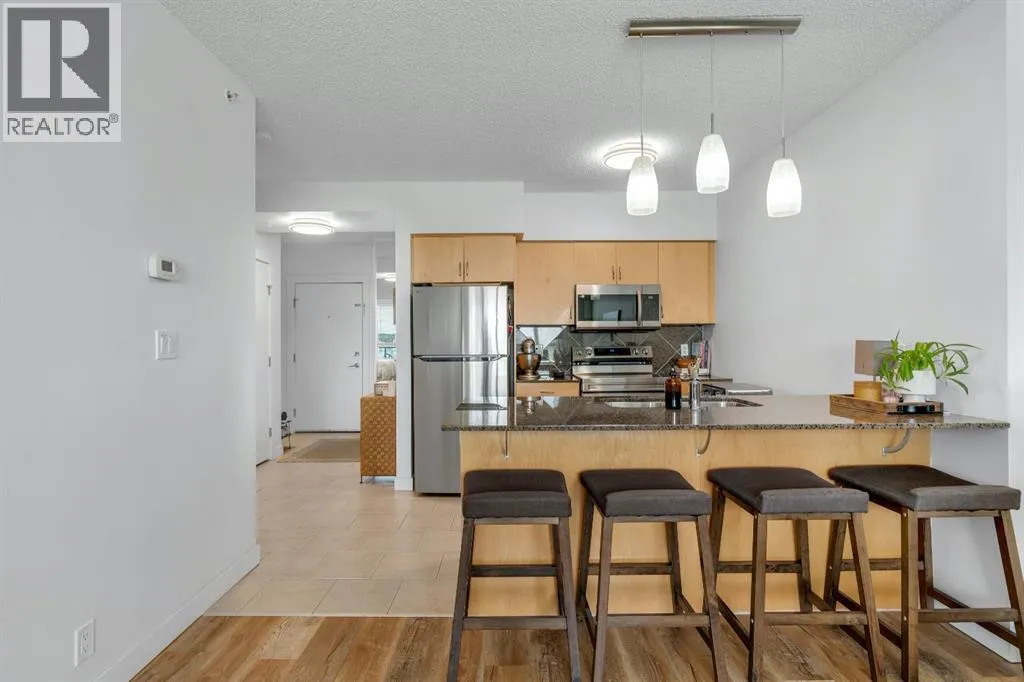 south-facing windows that flood the rooms with natural light. Cooking enthusiasts will appreciate the well-appointed kitchen, equipped with light and airy cabinetry for ample storage, and a large granite island perfect for meal prep or casual dining. The breakfast bar connects the kitchen to the dining and living areas, making entertaining a breeze. Step out onto the balcony, where a gas line makes barbecuing easy, all while enjoying sunny southern views. The spacious dining area is ideal for intimate dinners or larger gatherings, and the generous living room provides ample space for your furniture, creating a versatile environment for relaxation or hosting guests. Retreat to the primary bedroom with a large closet, huge bonus is the fabulous den area that provides the perfect space for an office, or if you have guests, add a dynamic Murphy bed, and voilà, you have a versatile space for overnight visitors! Located down the hall, the convenience of in-suite laundry that simplifies everyday chores. The elegantly finished 4-piece bathroom features a granite counter and dedicated storage area ensures your living space remains organized and clutter-free. This unit is move-in ready, allowing you to settle in and enjoy immediately. For added convenience, the condo includes one unassigned heated indoor parking stall and bike storage on the main level of the parkade. Building amenities cater to a modern lifestyle, featuring a dedicated concierge service from Monday to Friday, 24-hour security, and three high-speed elevators for easy access. Relax in the sunroom terrace on the 17th floor, w here you can unwind and take in panoramic views. The prime location offers unbeatable convenience, with direct parkade access to Save-On-Foods, Tim Hortons, and the “Shops at Heritage” right next door. The Heritage LRT Station is just across the street, providing quick and easy transit access.For outdoor enthusiasts, nearby bike trails, Glenmore Reservoir, Fish Creek Park, and numerous green spaces offer endless recreation options. Major shopping centers like Walmart, Chinook Centre, and South Centre are only minutes away, along with a variety of restaurants, pubs, and amenities that make this location truly exceptional. Don’t miss your chance to experience this incredible property. Great revenue property or first-time home buyer. (id:62650)