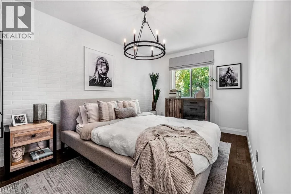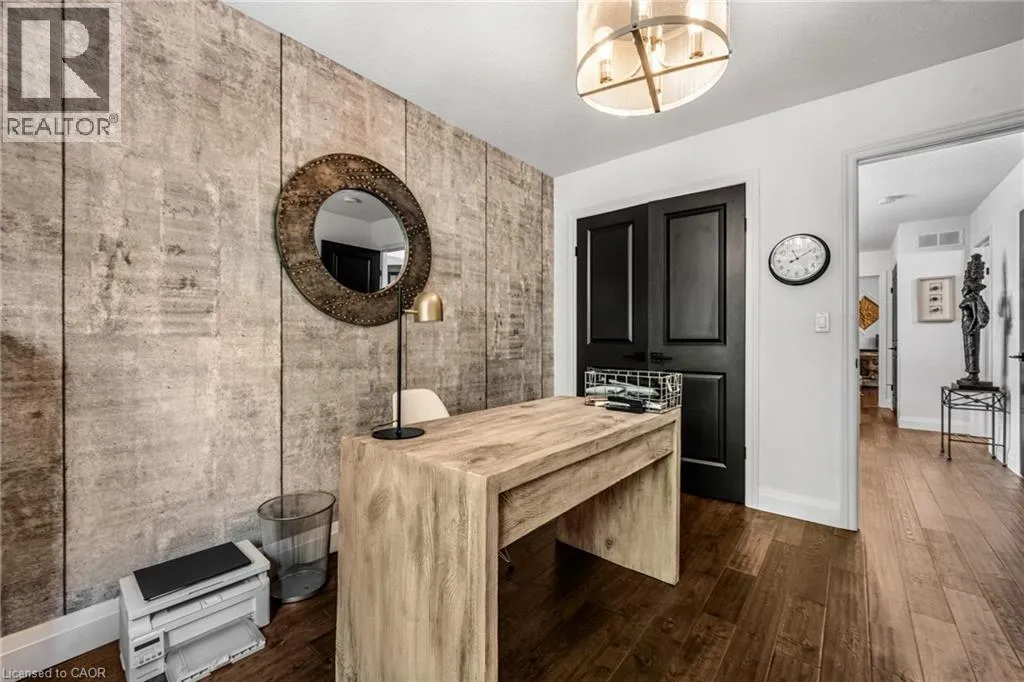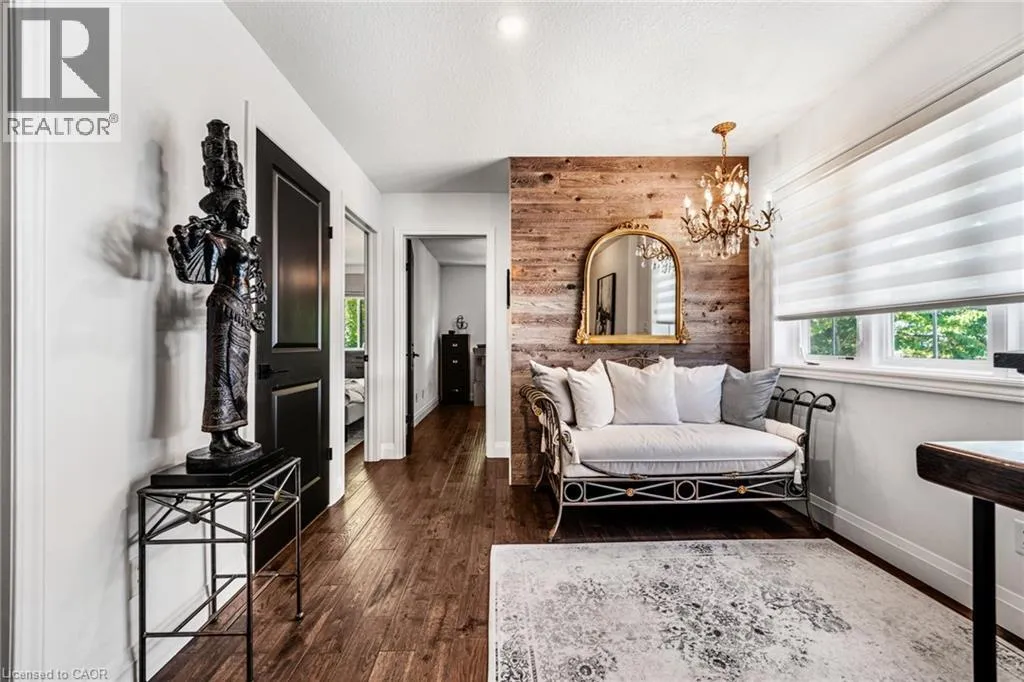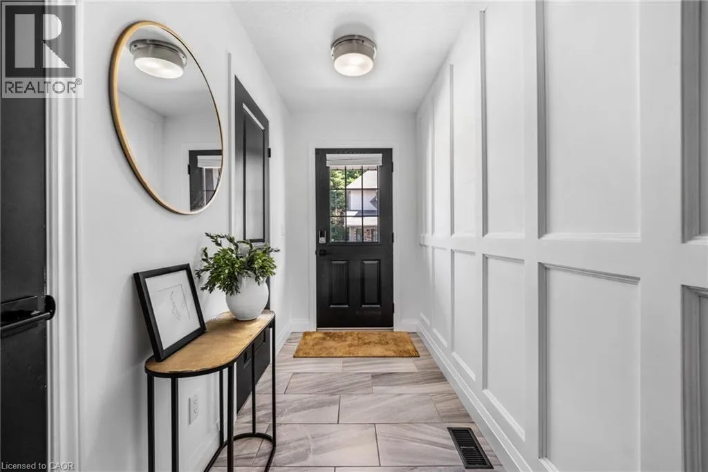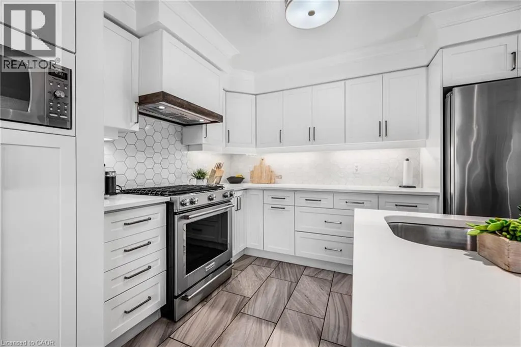 SAGINAW WOODS EXECUTIVE TOWNHOME! Tucked into a family-friendly neighbourhood celebrated for its excellent schools, walking paths, bike lanes, and quick 401 access. Step inside and you’ll immediately feel the attention to detail. The entryway sets the tone with custom wainscoting and upgraded tile, leading you into an open main floor designed for connection. The kitchen is a showpiece, featuring lacquer