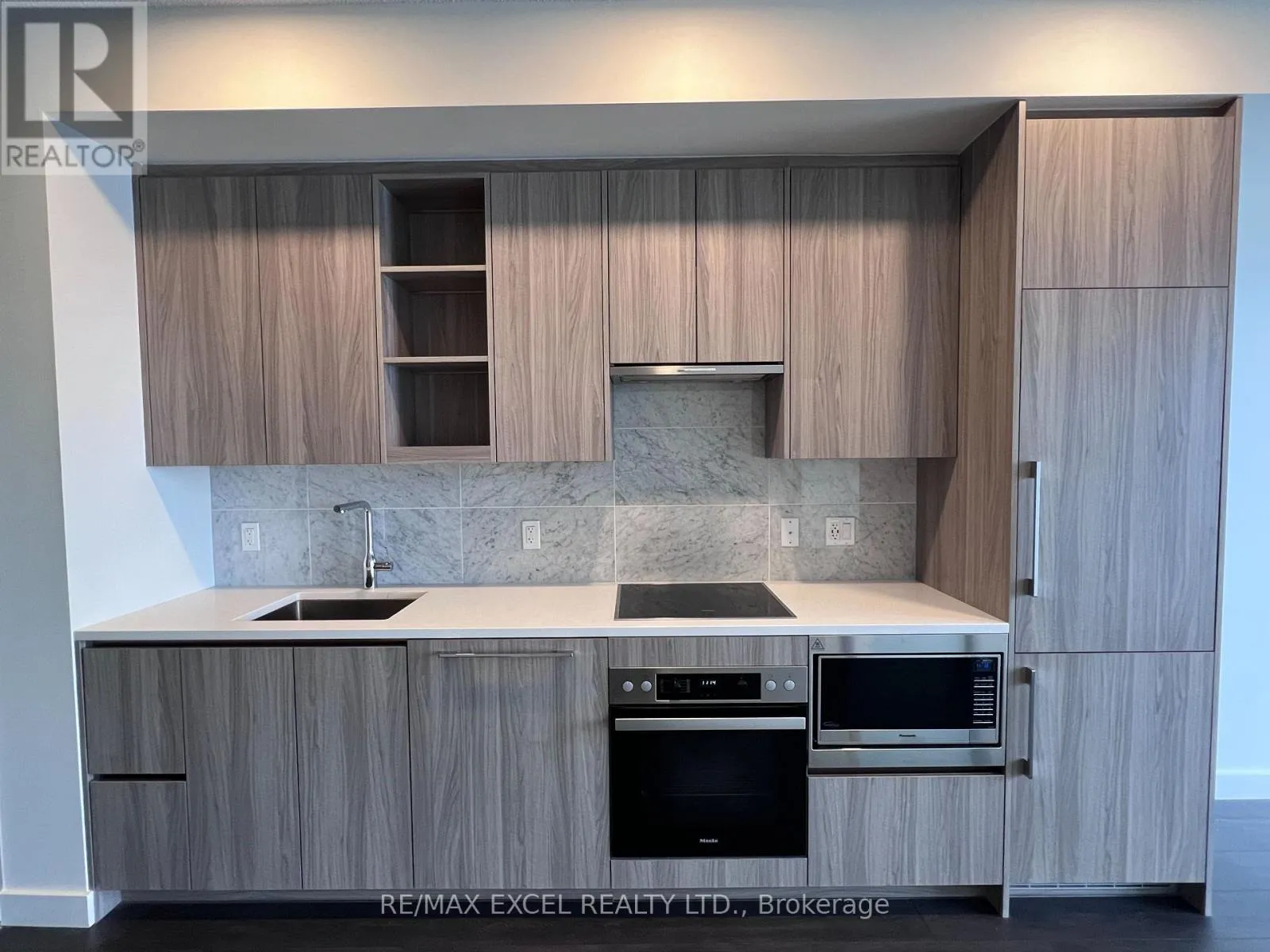 ** 1 underground Parking w/ EV Charger & 1 Locker Included ** Seasons Condominiums By Concord Adex. This New Bright & Modern 9 Ft Ceiling One Bedroom + Den. Featuring Laminate Flooring Throughout, Modern Kitchen With Marble Backsplash , Quartz Countertop, Miele S/S Appliances, Marble Wall & Floor Tile In Bathroom With Designer Cabinetry/Quartz Countertop/Undermount Sink, Built-In Closet In Bedroom