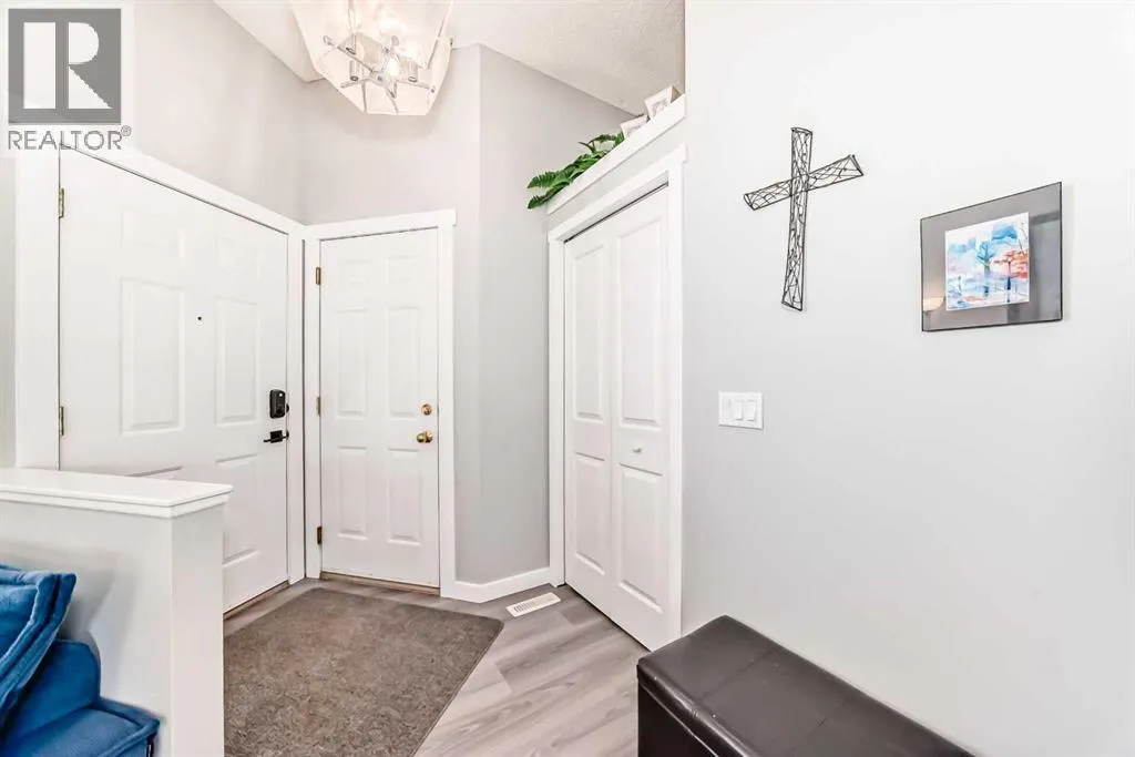 Welcome to this lovely three bedroom, two bathroom family home in the heart of friendly Tuscany – close to all the amenities of the Tuscany Club, nearby shopping, 12 Mile Coulee School, St. Basil Catholic School, and the scenic 12 Mile Coulee Park walking paths. The front entrance opens into a bright living room bathed in natural afternoon light. Up