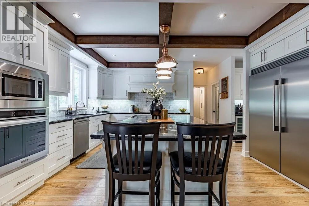 Homes like this don’t come around often! Tucked away on a quiet street in Ancaster’s coveted Oakhill neighbourhood, this custom bungaloft delivers timeless country-inspired design, space, and lifestyle in one impressive package. The main floor is bright and open, centred around a stunning eat-in kitchen that works just as well for casual mornings as it does for hosting. A dramatic