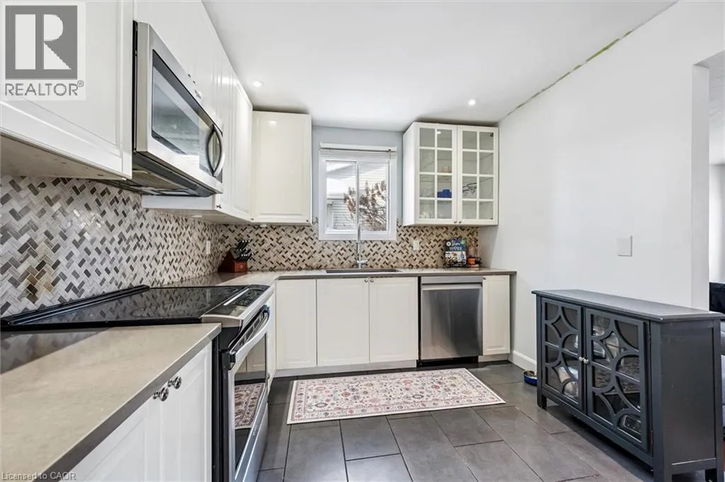large windows that flood space W/natural light. Eat-in kitchen has been tastefully updated W/white cabinetry with B/I wine rack, quartz counters, oversized tile floors, chic backsplash & S/S appliances, offering ample storage & prep space. Dinette features sliding doors that open directly to backyard seamlessly blending indoor & outdoor living. Inviting family room has cozy fireplace W/dramatic floor-to-ceiling brick mantel flanked by windows that frame the peaceful views. This space offers a warm & welcoming atmosphere to relax & unwind. Main level is completed by modern 2pc bath & laundry. Upstairs you’ll find 3 bdrms all W/hardwood floors, large windows & ample closet space. Updated 4pc main bath W/modern vanity & tiled shower/tub combo providing both style & function for busy family life. Fully renovated bsmt completed last year, adds versatility to the home W/wide vinyl plank floors, spacious rec area & add’l bonus room that would make excellent office, gym or playroom. There is R/I for a 3/4pc bath making it ideal for extended family & guests. The backyard offers a true private retreat! Enjoy evenings on expansive deck overlooking a lush treed yard, complete W/private gazebo & hot tub. With ample greenspace for kids & pets to play this space is both peaceful & practical. Steps from trail access leading directly to Rittenhouse Park, Countryside Park & schools incl. Blessed Sacrament Catholic Elementary School, Cardinal-Léger Catholic Elementary School & Glencairn PS. Quick access to shopping centres, grocery stores, fitness, restaurants & commuter routes including Hwy 7, Hwy 8 & 401! (id:62650)