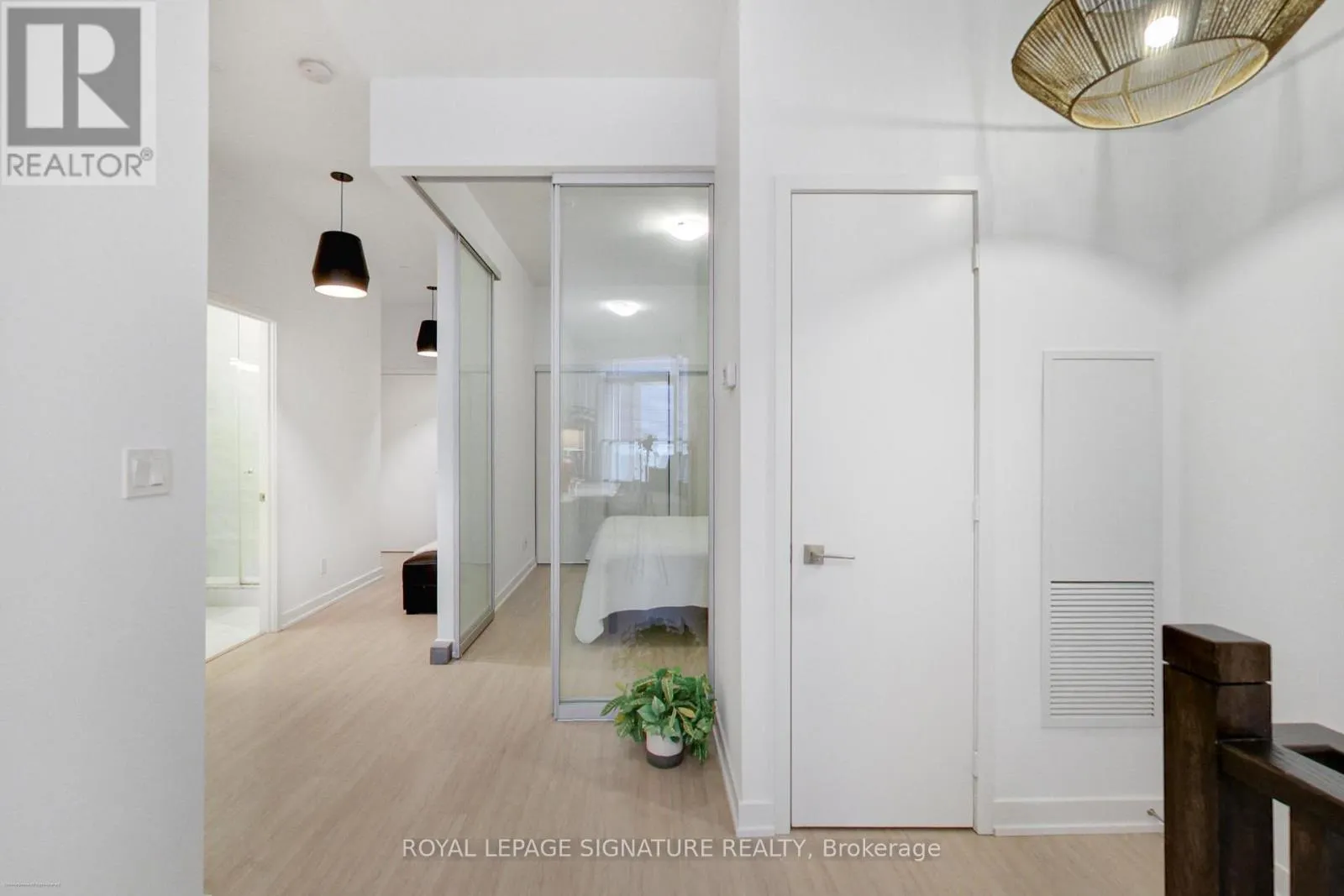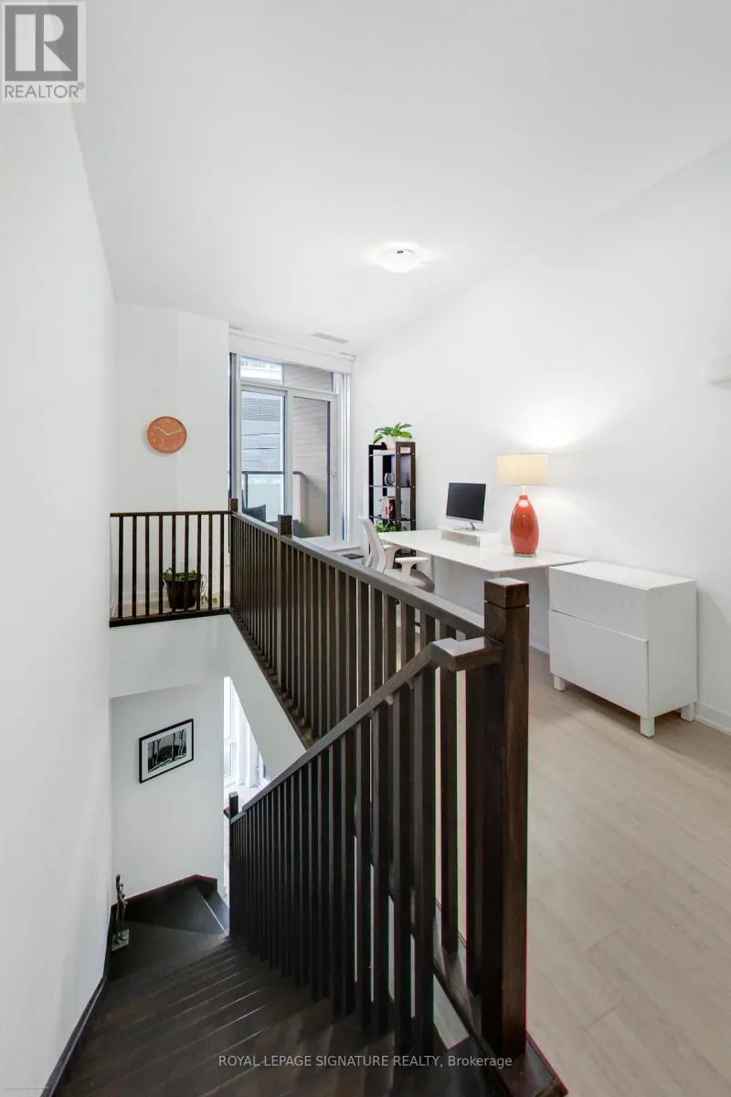 Stunning 2-storey, 2-bedroom plus den, 2-bath townhouse-style condo offering nearly 1,300sqft of bright, modern living in the heart of Liberty Village. This rare multi-level layout features a private street-level entrance, a spacious front terrace ideal for outdoor dining, and an additional upper-level balcony off the loft. The open-concept main floor boasts soaring ~10ft ceilings, wide-plank flooring, floor-to-ceiling windows, and a