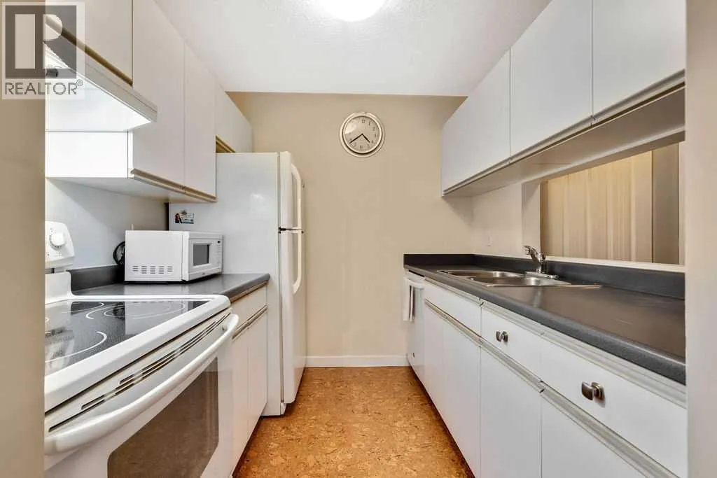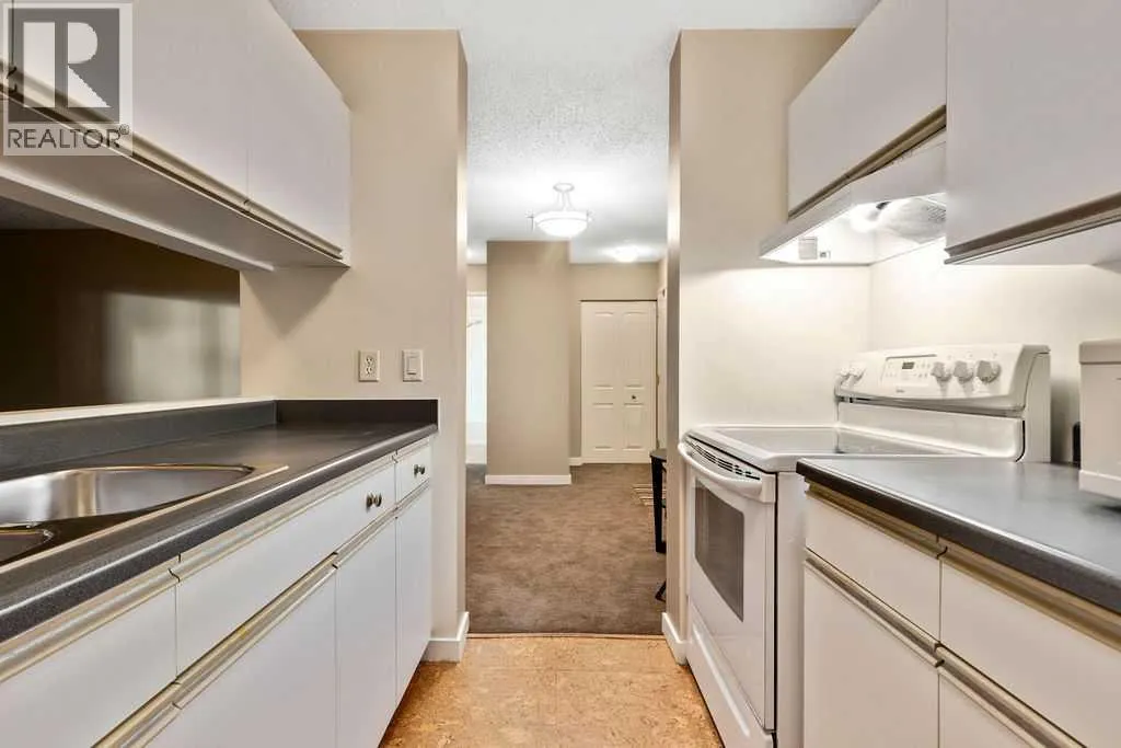 Welcome to this beautifully maintained 2 bedroom, 2 bathroom main-floor condo offering a smart, functional layout and exceptional convenience. This thoughtfully designed floorplan features a welcoming galley-style kitchen, in-suite laundry, and nicely updated bathrooms that add a modern touch. The spacious primary bedroom includes a walk-through closet leading to a private 4-piece ensuite, creating a comfortable and private retreat.