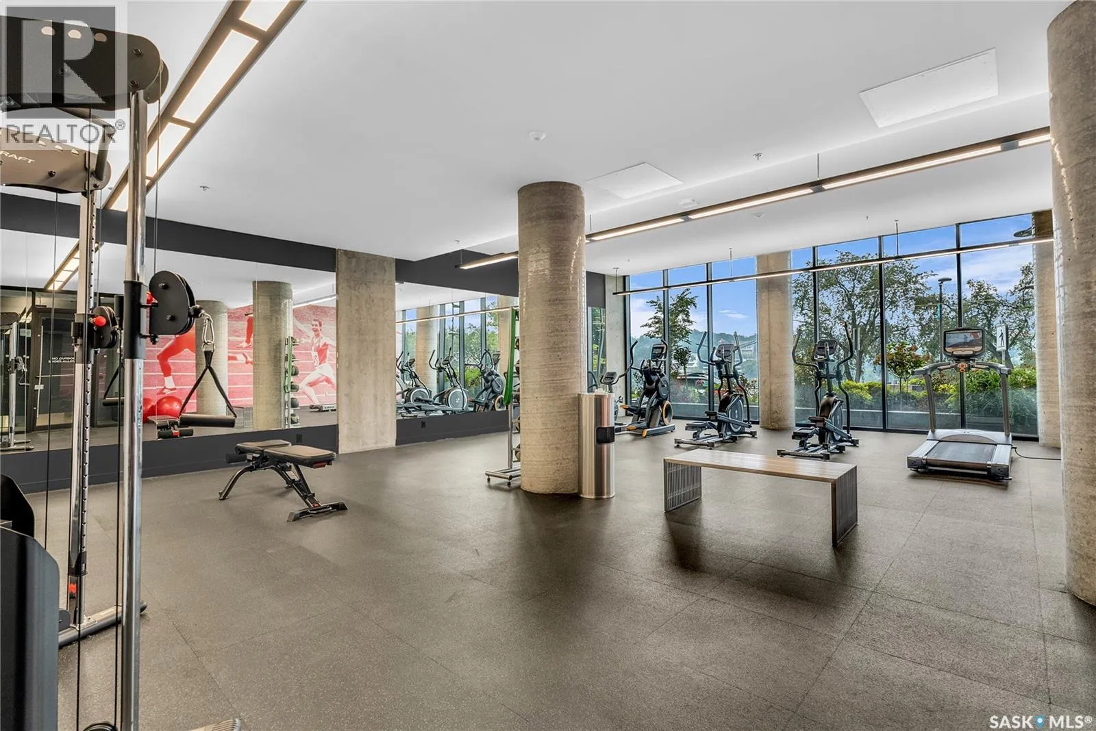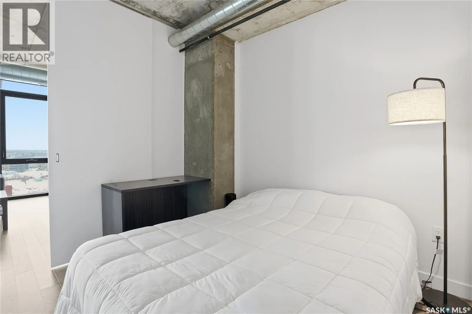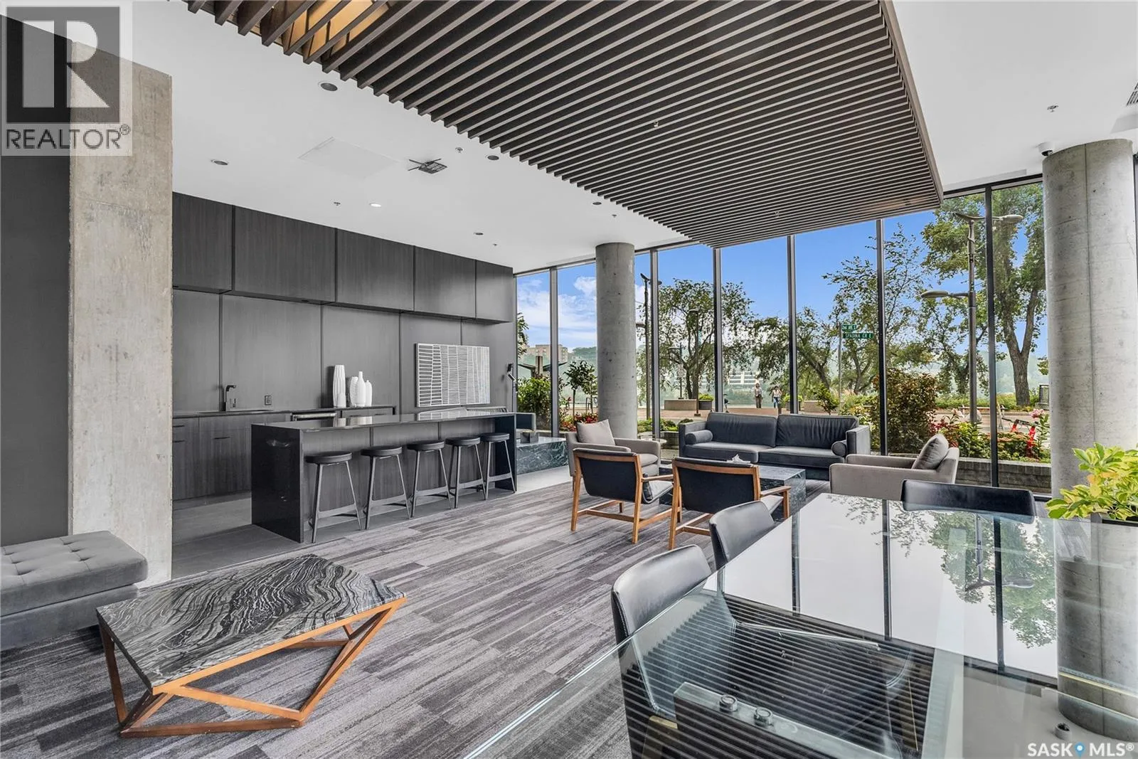 Stunning 13th floor unit at No. 1 River Landing, featuring an expansive view of Saskatoon’s downtown, River Landing Park and the South Saskatchewan River. Great layout with 9 ft concrete ceilings, kitchen with quartz counters and stainless steel appliances, 2 bedrooms + den and two bathrooms. Primary bedroom has direct access to the balcony and features a walk-thru closet open